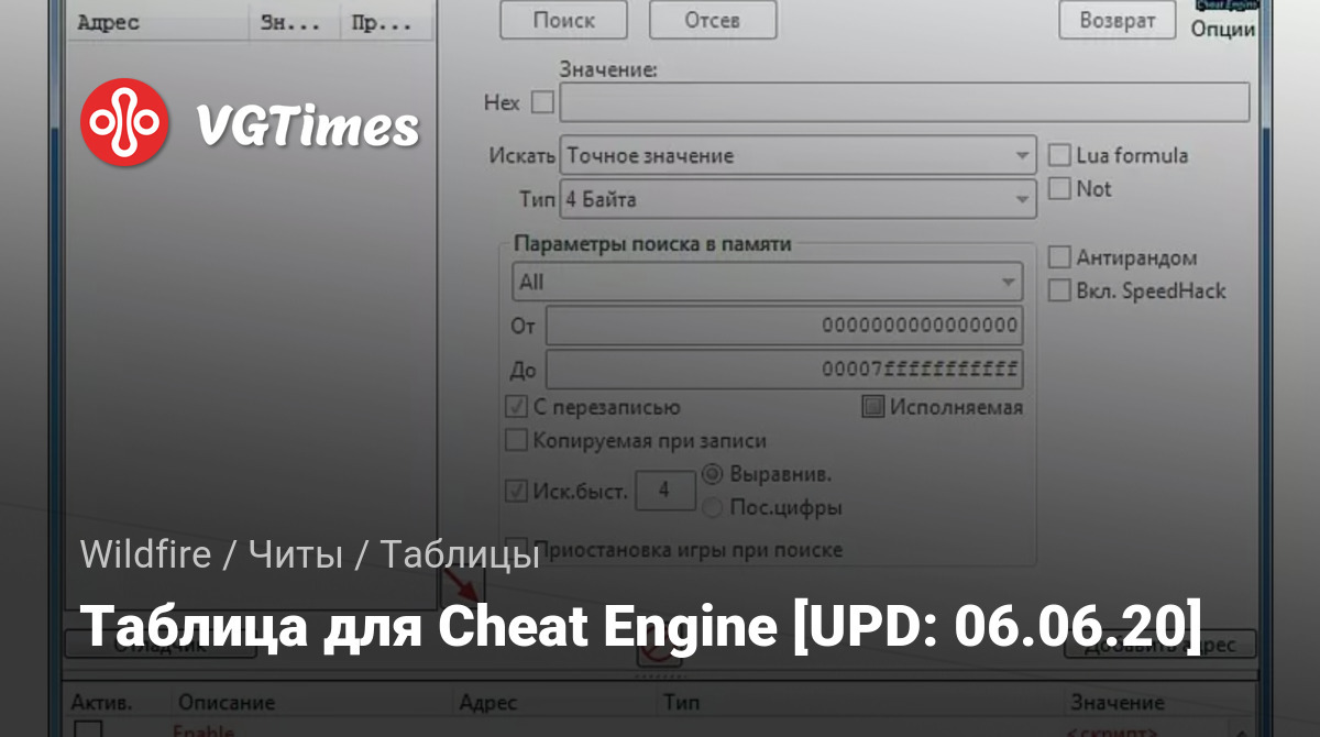 Таблица для Cheat Engine [UPD: 06.06.20]