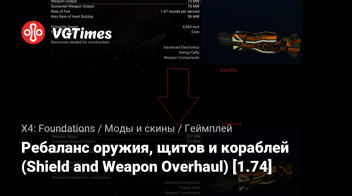 Ребаланс оружия, щитов и кораблей (Shield and Weapon Overhaul) [1.74]