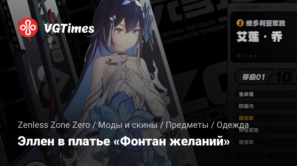 Добавляет новое платье для Эллен. В комплекте платье и оружие.