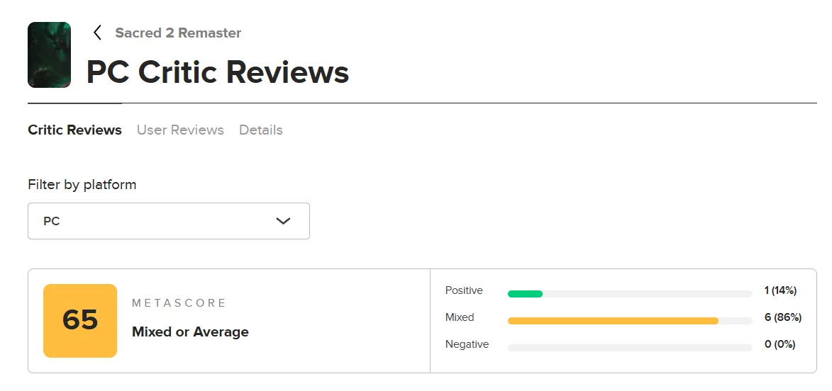 The remaster gry fantasy RPG z otwartym światem Sacred 2, pierwotnie wydany w 2008 roku, jest teraz dostępny na PC (Steam), PlayStation 5 i Xbox Series X/S. Projekt otrzymał mieszane recenzje od krytyków, obecnie mając wynik 65 na Metacritic w momencie pisania.