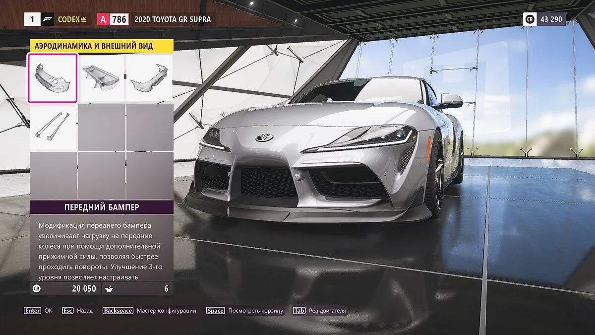 Adjusting aerodynamics allows you to set downforce, ensuring optimal contact of the car with the ground and improving handling. To unlock this setting, you need to purchase racing modifications for the front and rear bumpers.