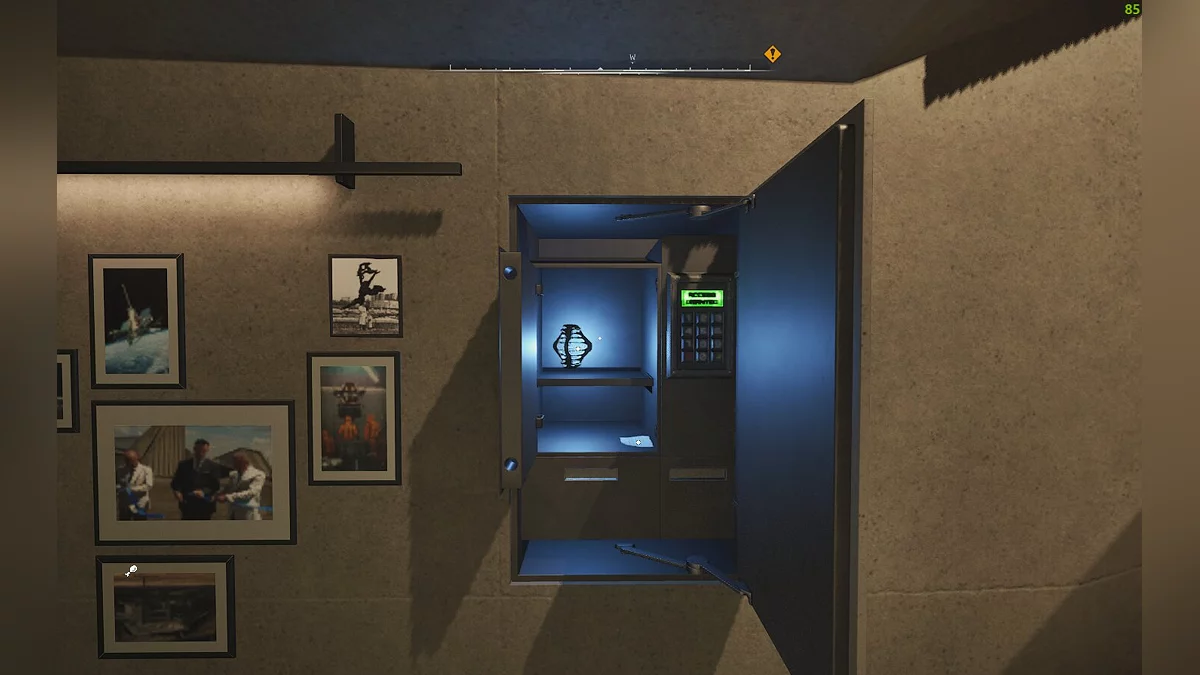 Interakcja z obrazem otworzy przejście z podświetleniami po prawej stronie, a ty będziesz mógł zobaczyć ukryty sejf. Aby znaleźć kod do sejfu, możesz przejrzeć dziennik Daliny leżący na jego biurku lub po prostu użyć kombinacji — 2006. Otwierając sejf, znajdziesz artefakt Mica oraz notatkę na drogim papierze.