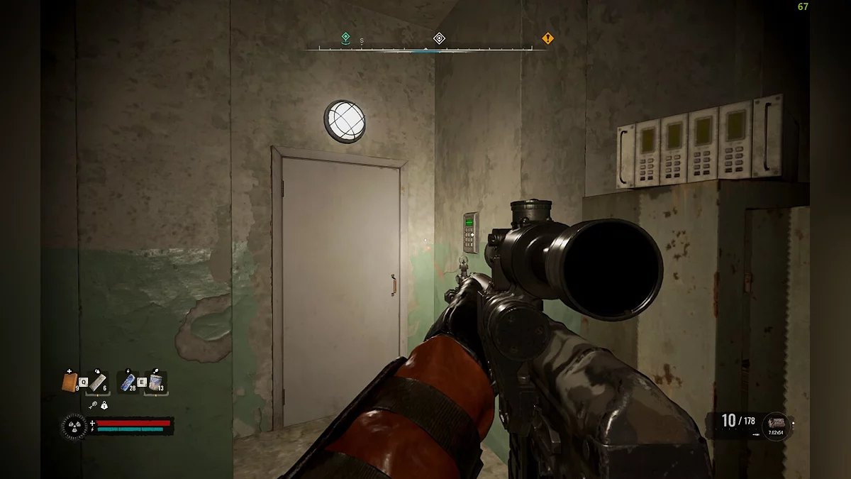 Uważaj na anomalia elektryczne w tej okolicy, ponieważ mogą spowodować znaczne obrażenia. Wejdź do budynku i udaj się na drugie piętro. Na tym poziomie czeka na ciebie sejf z zamkiem szyfrowym. Aby go otworzyć, wprowadź kod 1708. Wewnątrz znajdziesz ukrytą skrytkę wypełnioną materiałami medycznymi, jedzeniem i amunicją, które na pewno przydadzą się w dalszej podróży.