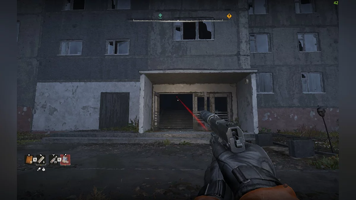 Ta skrytka znajduje się w jednym z wielopiętrowych budynków w Prypeci, który jest zaznaczony na powyższej mapie. Po dotarciu na najwyższe piętro budynku, skręć w lewo i wprowadź kod — 13263622. W tym mieszkaniu znajdziesz wiele przydatnych przedmiotów, od materiałów medycznych po różne bronie, w tym pistolet Gaussa. Sam kod można znaleźć w notatkach od stalkera, które są podzielone pomiędzy osiem PDA rozsianych po mapie gry.