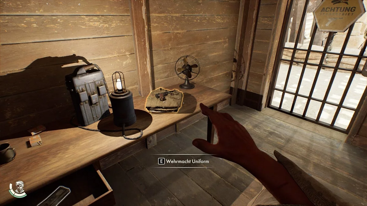 Razem z mundurem znajdziesz klucz, który można użyć do otwierania drzwi z żółtymi znakami ostrzegawczymi. Obejmuje to jedną z wież, w której dostajesz mundur, a także zamknięte drzwi w garażu z nazistowskim sprzętem oraz drzwi w samym obozie nazistowskim.