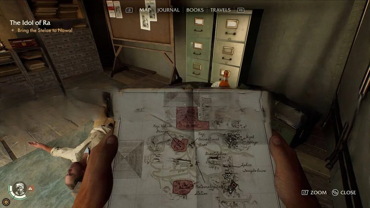 Gdy ty i Nawal przejdziecie przez wykopaliska w świątyni po wschodniej stronie obozu nazistowskiego, odkryjesz ważną wskazówkę dotyczącą stele snów, po czym Nawal wróci do swojego namiotu. Bramy pod torami kolejowymi teraz się otworzą, ale obok nich będzie wieża strażnicza, której drzwi są zamknięte. Te drzwi wymagają klucza Wehrmachtu.