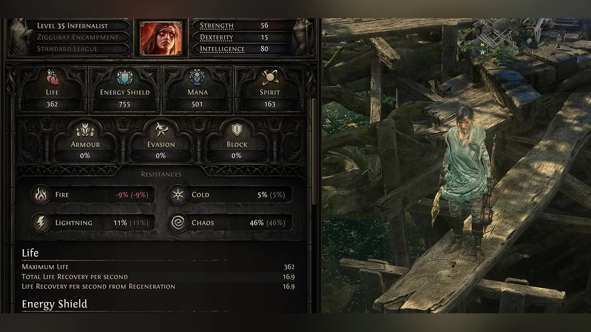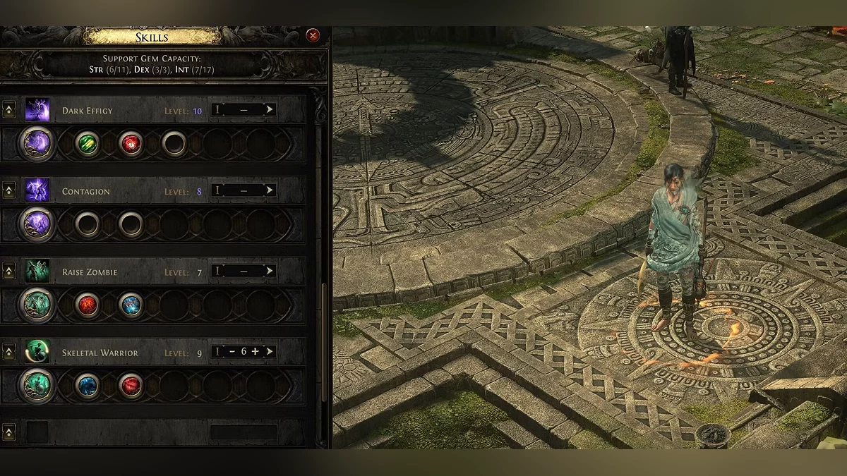 Trochę Zręczności również jest miłe na początku dla Czarodziejki, ponieważ istnieje kilka klejnotów wsparcia umiejętności w Zręczności, które wpływają na obrażenia w czasie i obrażenia chaosu. Na przykład, Contagion i Essence Drain.