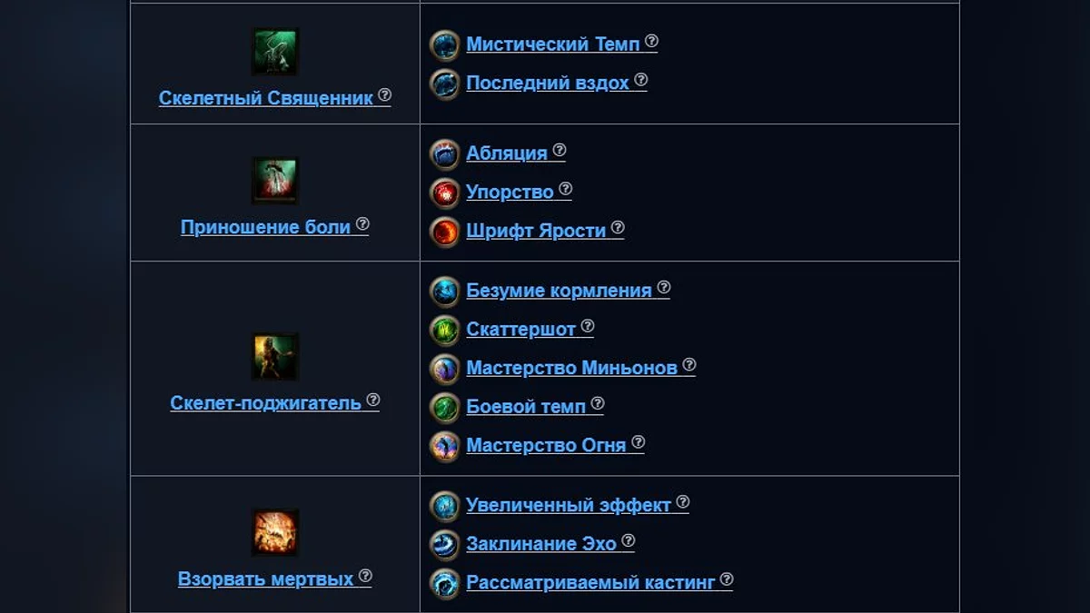 Ta budowa wykorzystuje szkielety do dominacji nad wrogami, zaczynając od snajperskich szkieletów na początku gry, przechodząc do szkieletów niszczycieli w połowie gry, a kończąc na armii piromantów i kapłanów skoncentrowanych na krytycznych ciosach pod koniec gry. Ofiara bólu zwiększa ofensywne możliwości twojej armii, podczas gdy Wrażliwość i Palność osłabiają twoich wrogów.