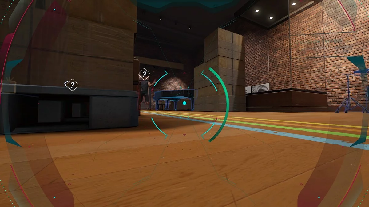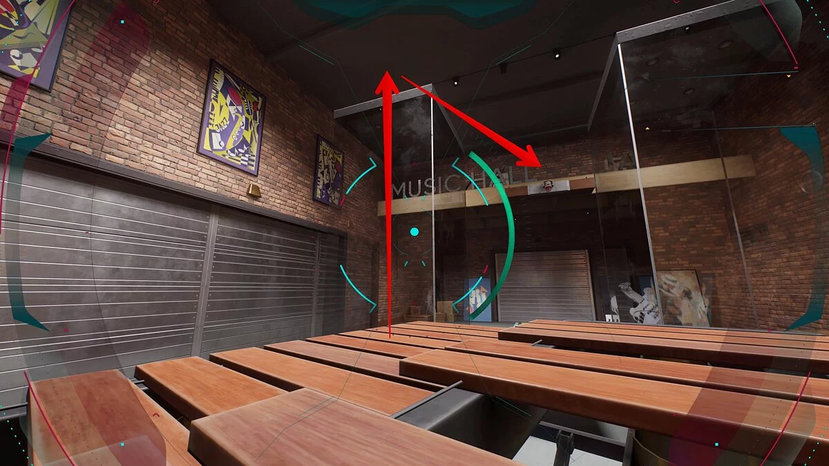 Następnie przesuń się w miejsce, gdzie stał przestępca, i skocz do wentylacji. Przejdź do następnego pokoju, wejdź na szklany regał, a stamtąd skocz na wystającą krawędź, na której jest napisane Music Hall. Tam znajduje się kolejny przekaźnik.
