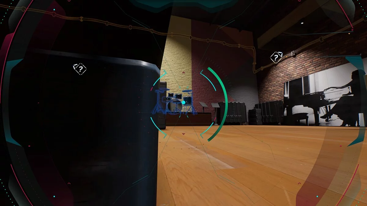Aby odwrócić uwagę wrogów w następnym pokoju, strzelaj w kontrabasy, perkusję i fortepian.