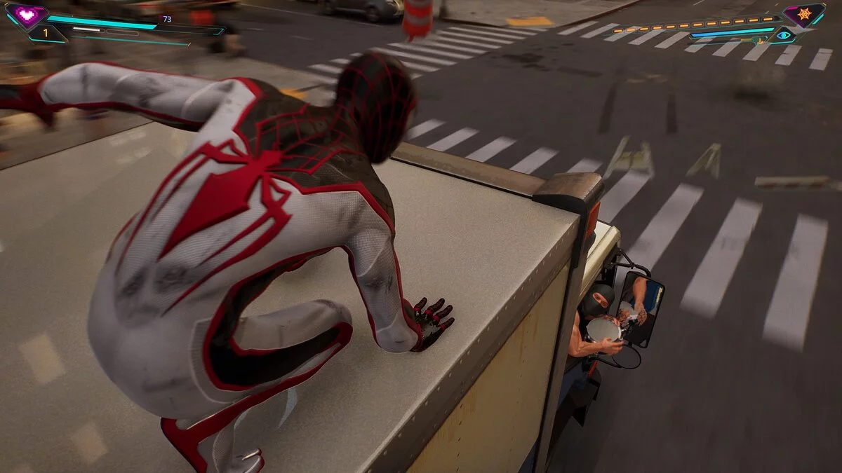 Zostaniesz zaproszony do cichego wyeliminowania wrogów, ale znacznie łatwiej jest pokonać ich w walce wręcz. Po tym czeka cię pościg. Coś podobnego znajdziesz w misjach dodatkowych. Musisz ścigać samochód, który próbuje uciec. Gdy odległość zostanie zminimalizowana, pojawi się opcja przyciągnięcia się do samochodu za pomocą sieci, używając przycisku trójkąt.