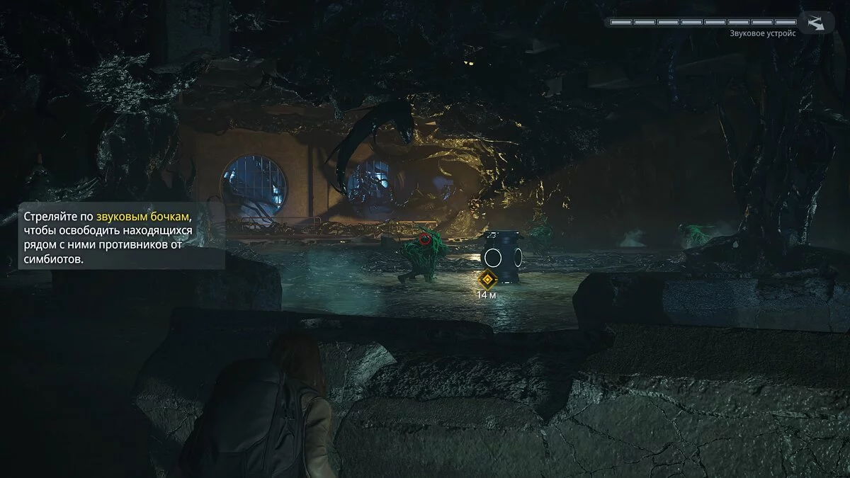 Z pomocą broni możesz zniszczyć symbioty. Będziesz potrzebować trzech strzałów na każdy. Ważne jest, aby celownik był czerwony, w przeciwnym razie trafienie się nie liczy.