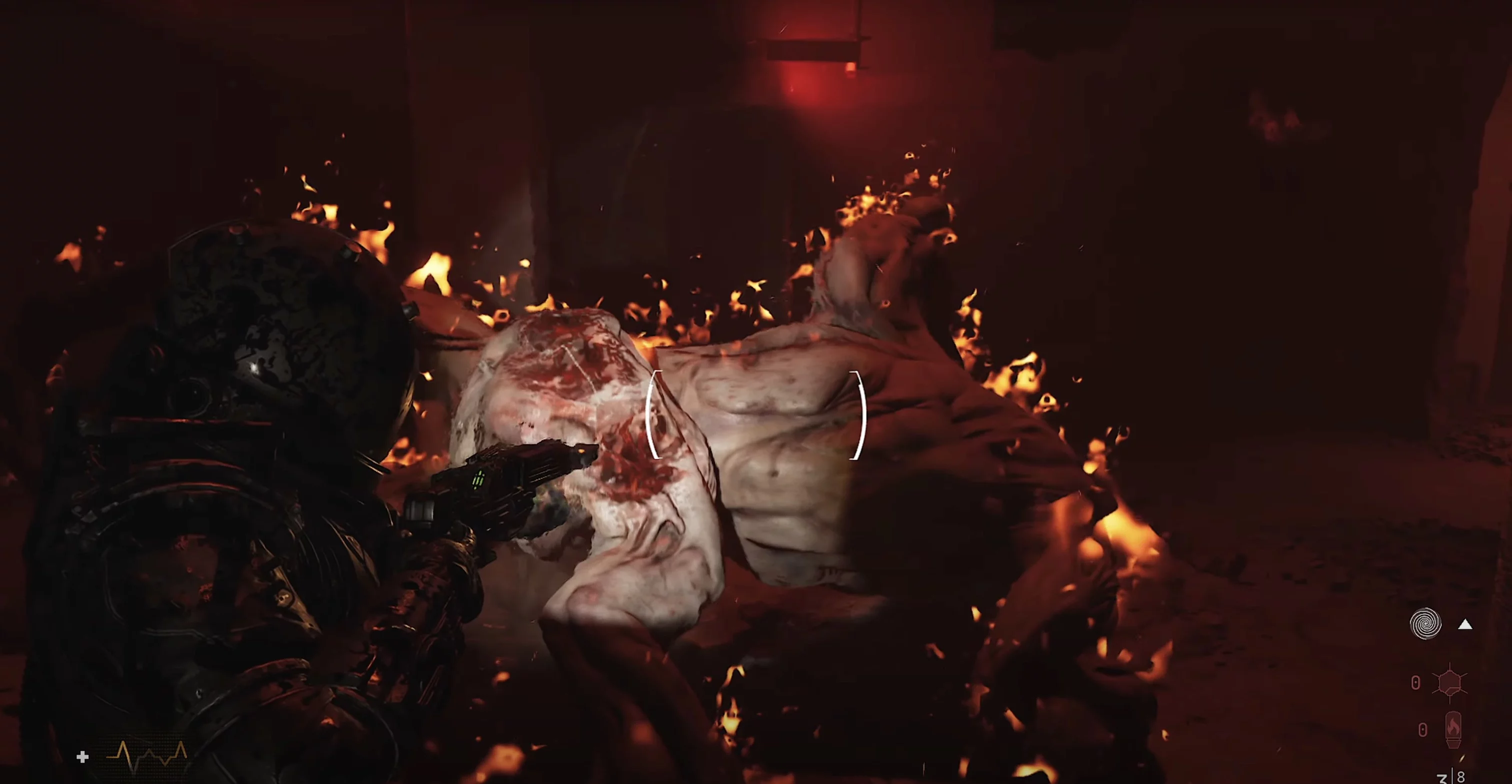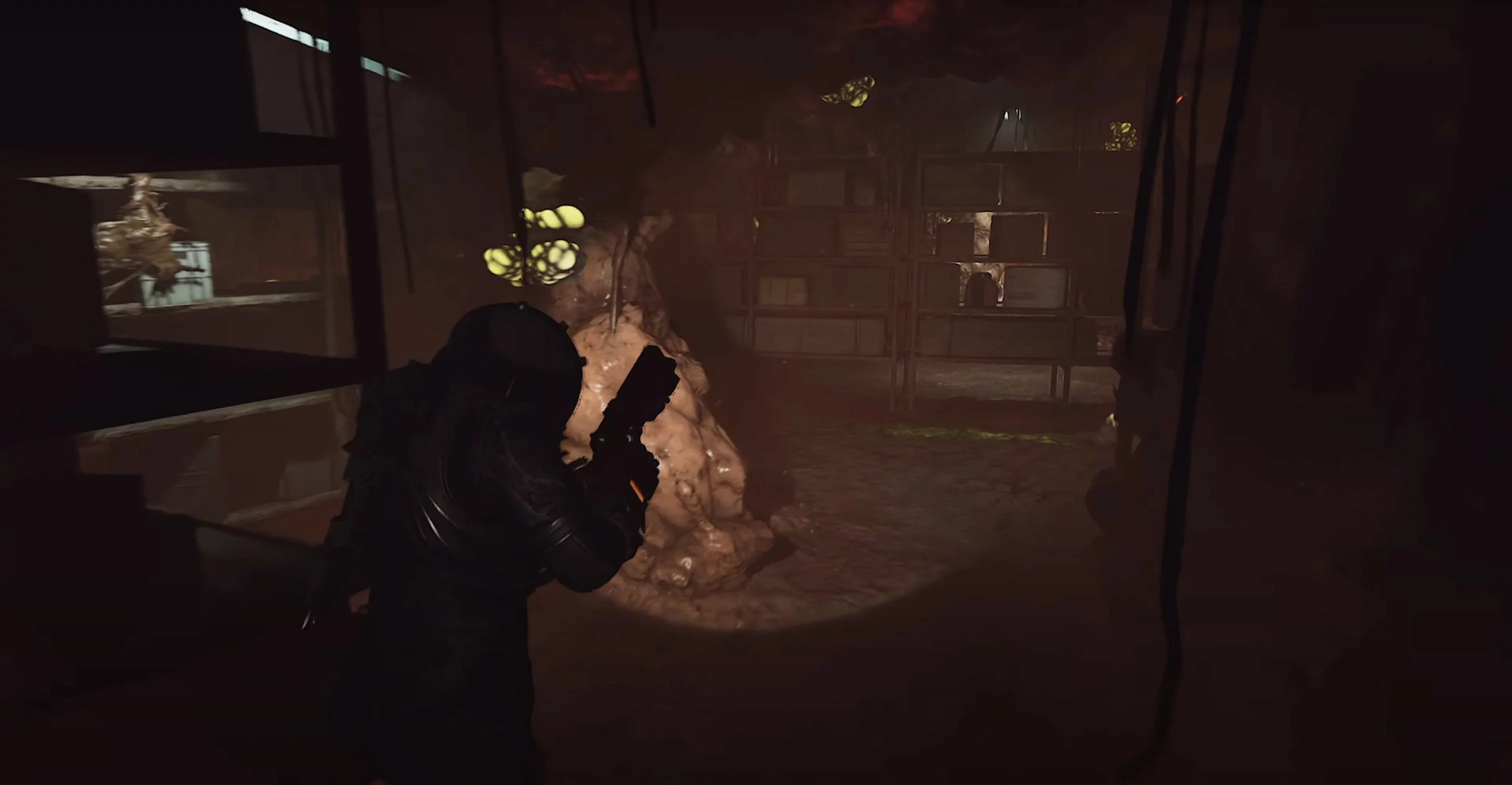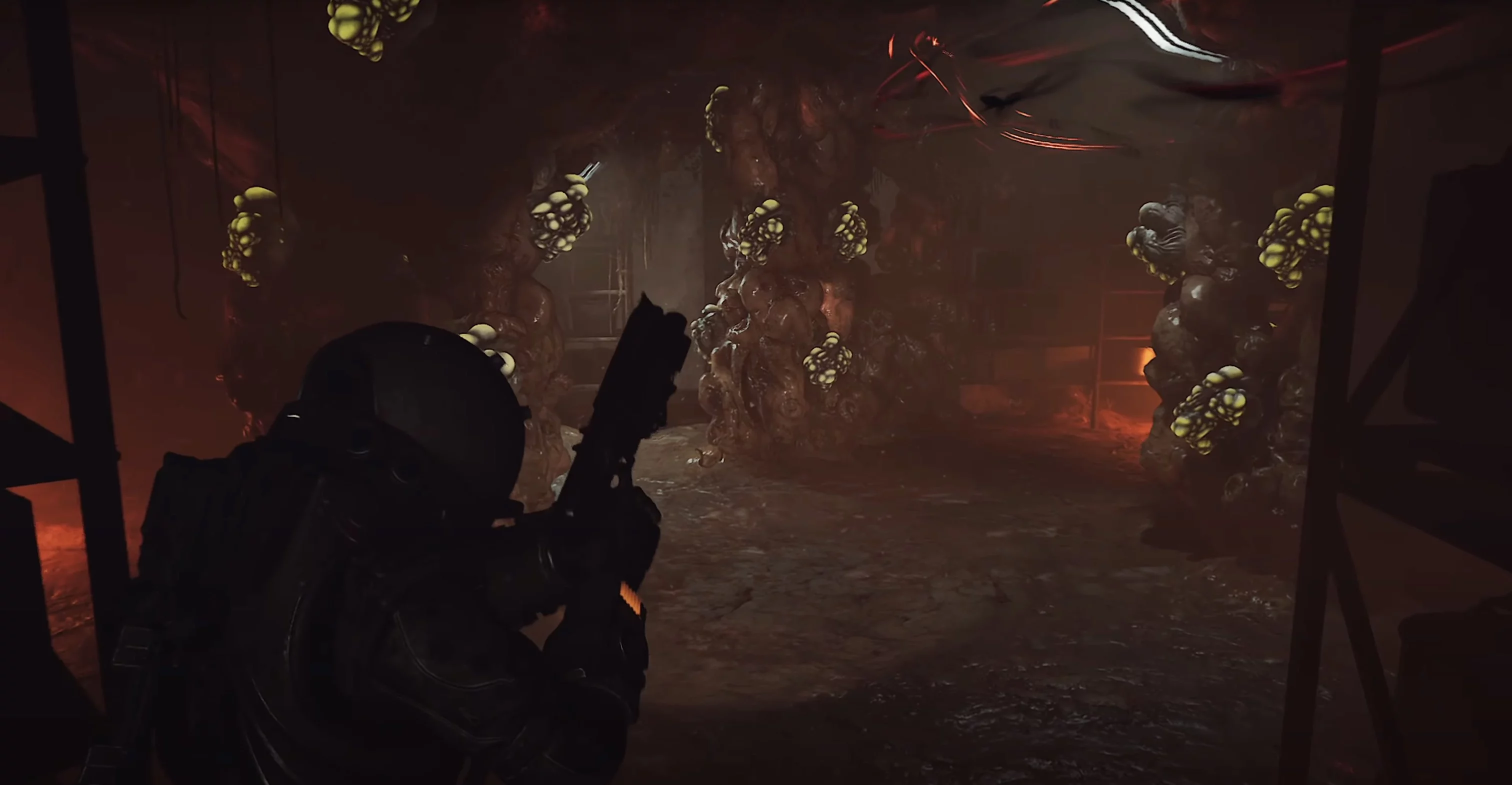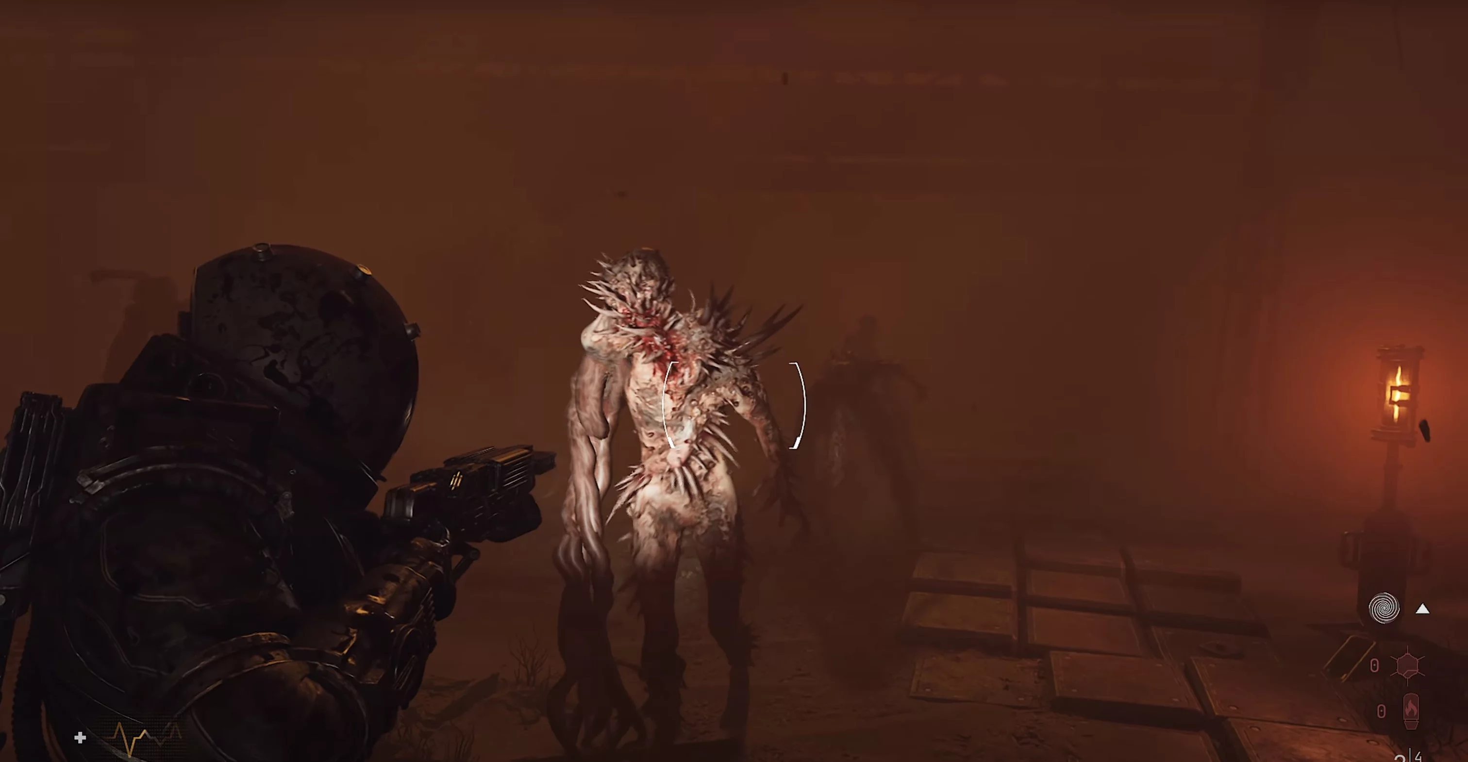Przed Tobą będzie jeden wróg. W końcu zejdź do tunelu. Weź amunicję do miotacza ognia. Możesz spalić ciała pobliskich stworzeń. Po prawej stronie jest dziura w ścianie. Przeciśnij się przez nią, aby zebrać zasoby i rdzeń.