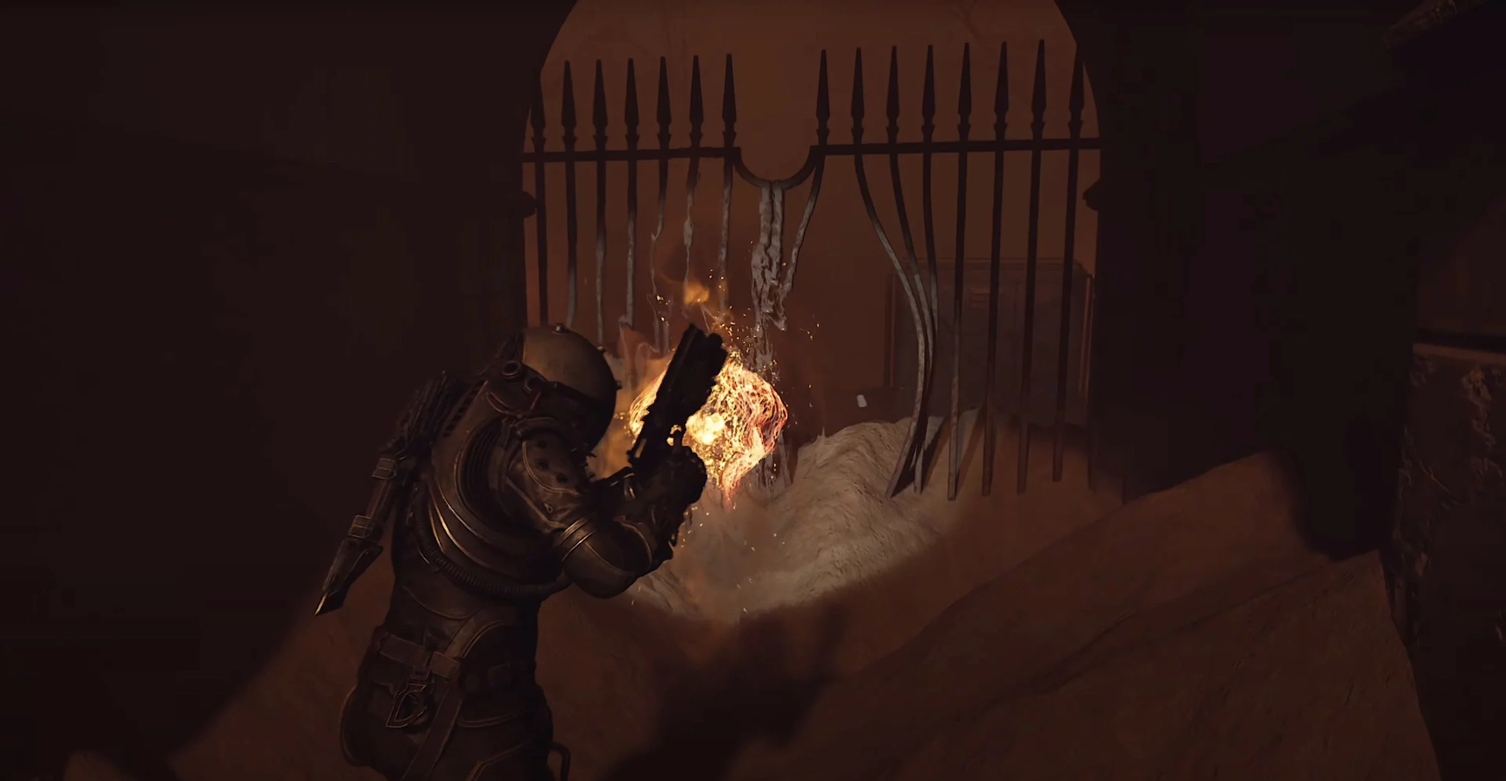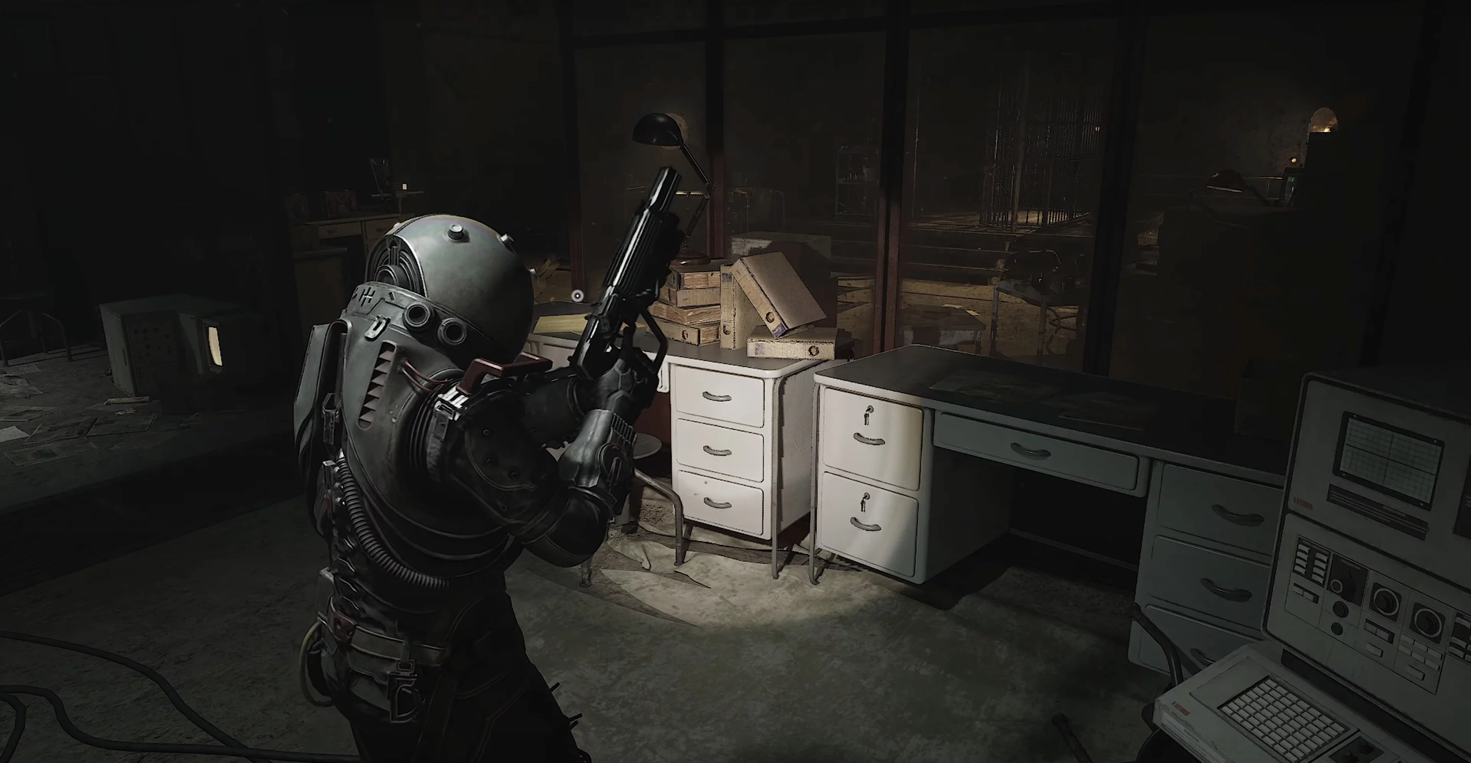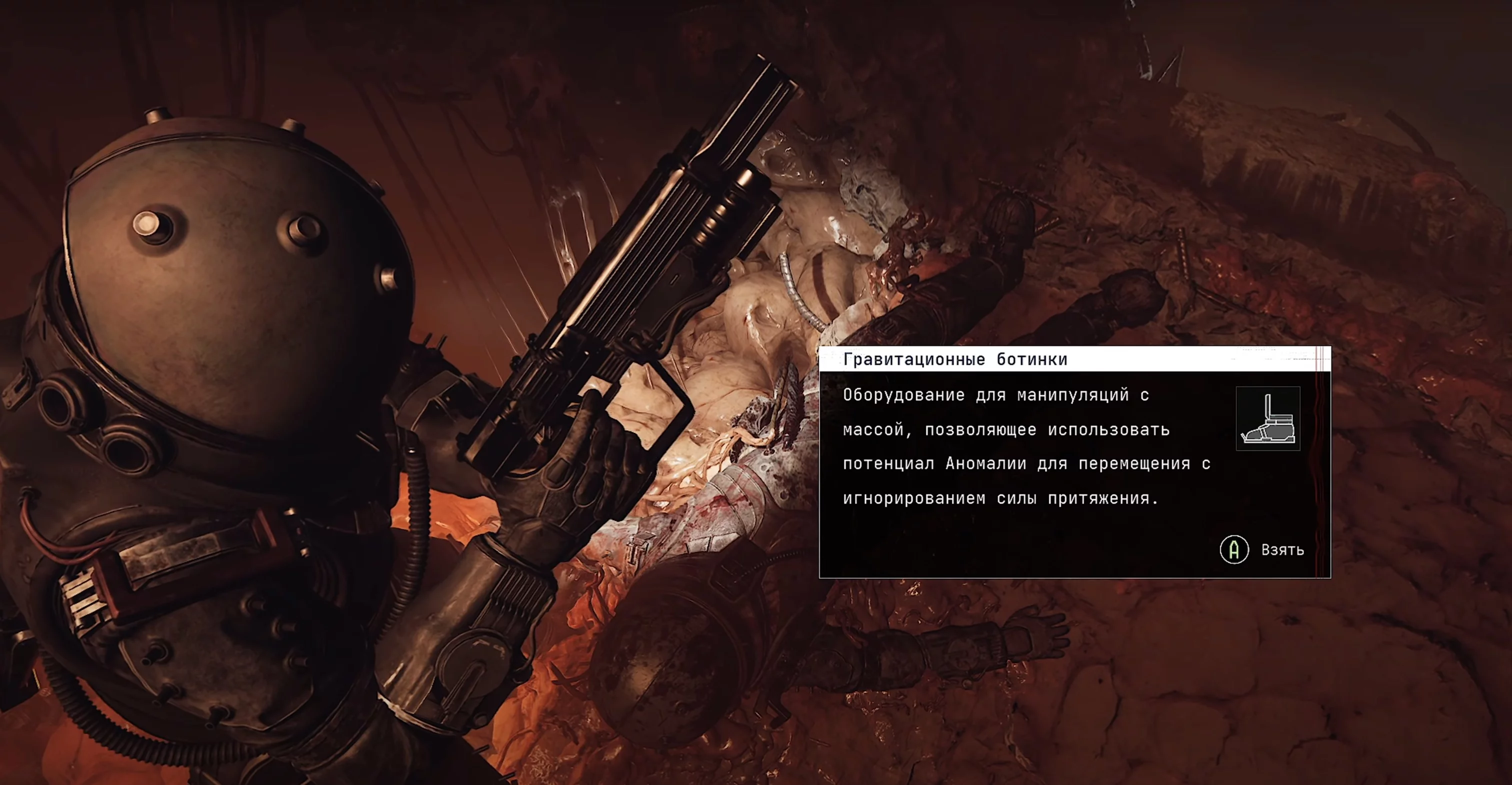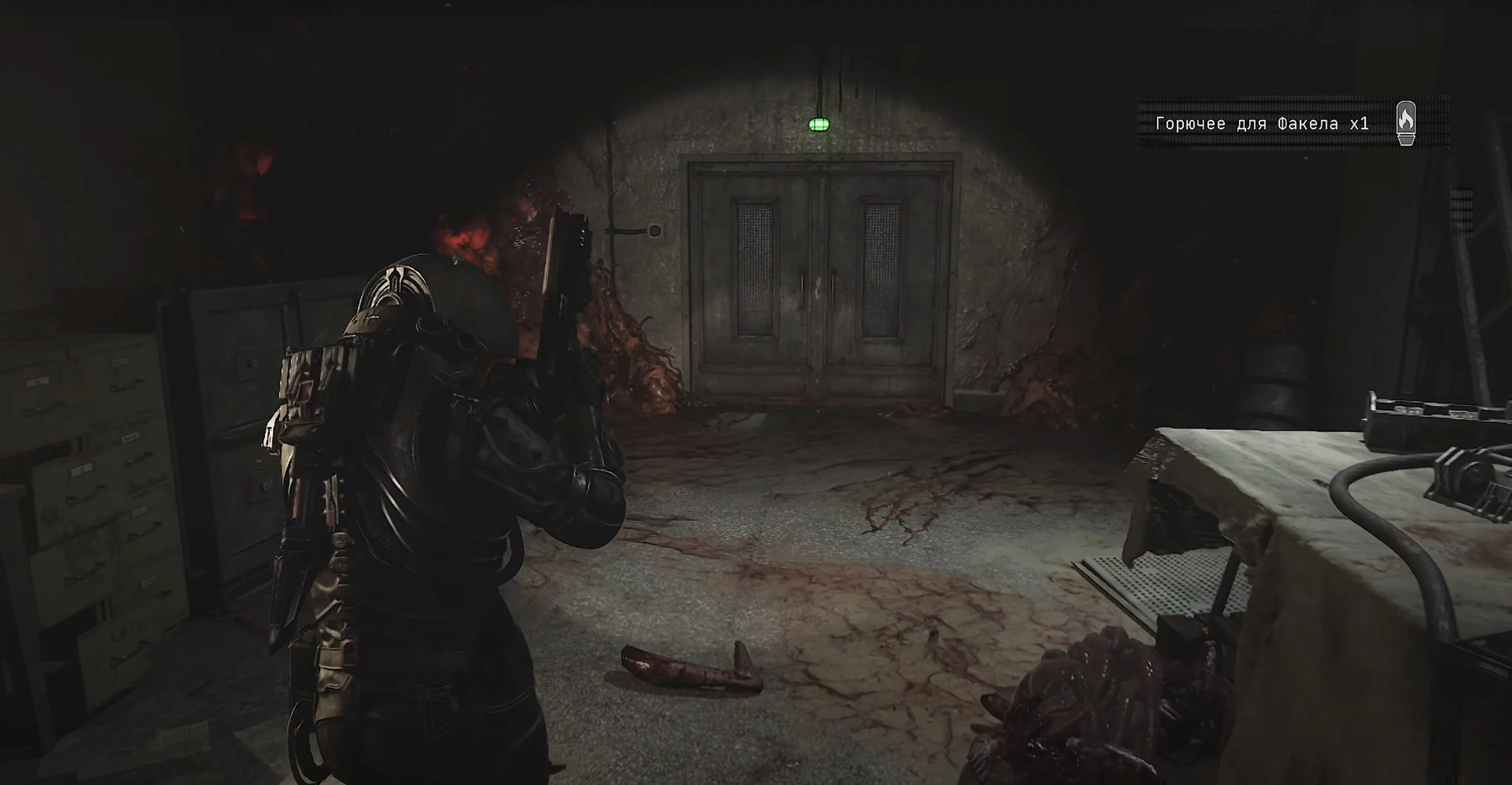 Nie możesz ich jeszcze otworzyć. Na końcu korytarza po lewej znajduje się drzwi, które możesz odblokować, łamiąc deski pięścią. W środku nauczysz się nowej umiejętności kombinezonu—latarki, która w zasadzie jest miotaczem ognia. Spal biomasy. W nowo otwartym pomieszczeniu znajdziesz Hermetyczny Klucz Wędrowców.