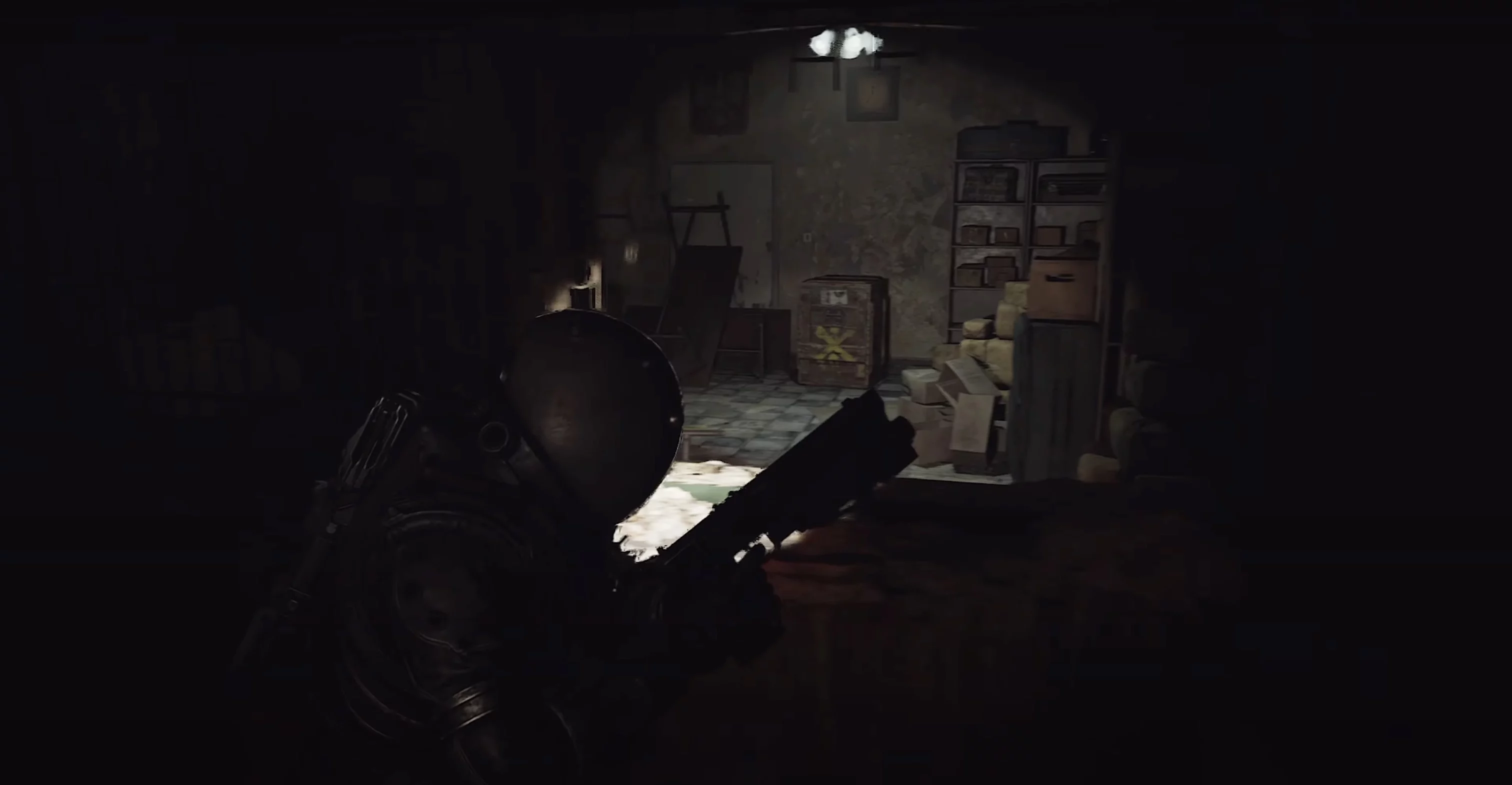 Prosto przed Tobą na stole znajdują się zasoby, ale bądź ostrożny—mutant jest na ścianie po lewej. Nieco dalej znajduje się skrzynka, a za ścianą po lewej jest kolejny mutant. Po prawej możesz zobaczyć trochę łatwopalnej biomasy—usuń ją, aby odblokować drugą anomalię. Najpierw aktywuj ją, a następnie tę, którą widziałeś na początku. Beczka się stoczy, otwierając dodatkowe przejście. Po lewej jest kolejny mutant na ścianie, a po prawej skrzynka. Trzymaj się prawej ściany i złam deski blokujące przejście do pokoju. W środku znajdują się notatka i energia, a także trzecia anomalia powyżej. Wyjdź i idź po schodach.