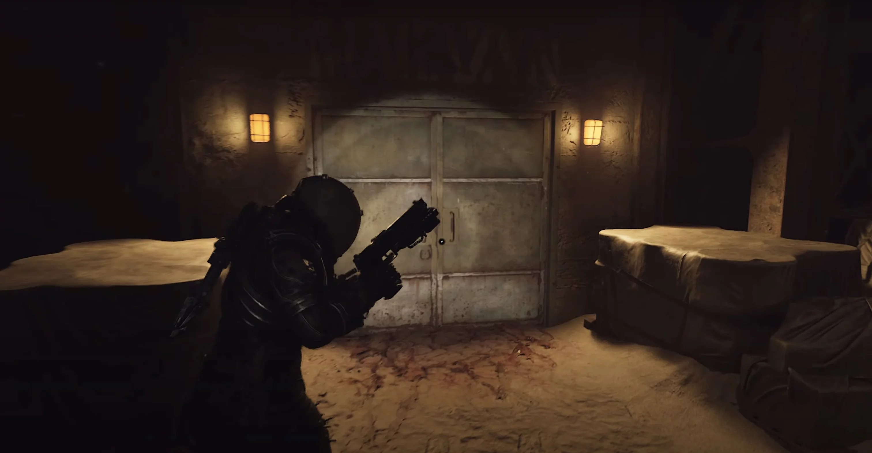 W środku są zasoby. Znajdziesz tam również złom metalowy nadający się do wytwarzania paliwa do miotacza ognia. Dzięki hermetycznemu kluczowi możesz otworzyć zablokowane drzwi na początku korytarza. W środku po prawej znajduje się terminal, który otworzy duże bramy w centralnej części w lewo w dół korytarza.