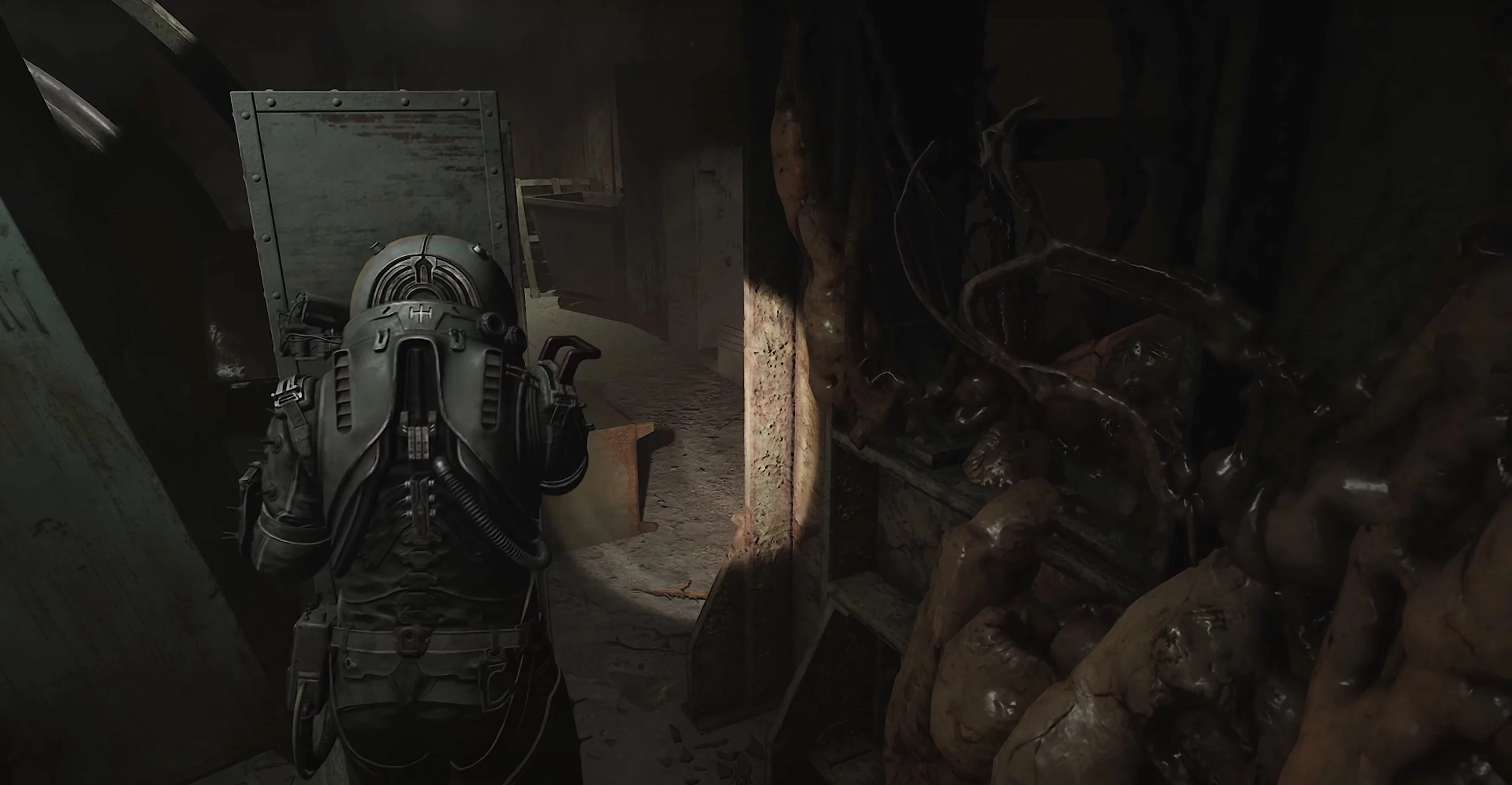 Za drzwiami znajduje się kilka potworów. Zbieraj energię i złom metalowy, a następnie przejdź przez jedyne drzwi. Znajdziesz się w korytarzu. Nie ma tu potworów, a po lewej przed wyjściem jest energia na szafce. Gdy tylko wyjdziesz, napotkasz nowego potwora, który chwyta Wędrowca długim wyrostkiem i przyciąga go do siebie. Użyj walki wręcz lub miotacza ognia, aby się od niego uwolnić. Po prawej stronie będzie niskie przejście przez ścianę.