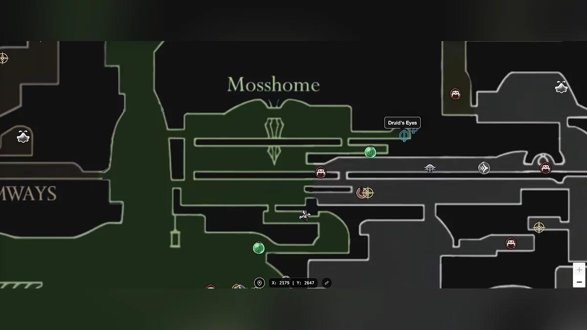 Jak wspomniano wcześniej, musisz znaleźć trzy jagody. Jedna jest tuż obok jaskini Druida, a pozostałe dwie znajdują się w pierwszej lokalizacji — Mossy Grotto. Istnieją jednak również trzy alternatywne opcje. Na naszym zrzucie ekranu z interaktywnej mapy możesz zobaczyć wszystkie ich lokalizacje. Są oznaczone zielonymi kropkami.