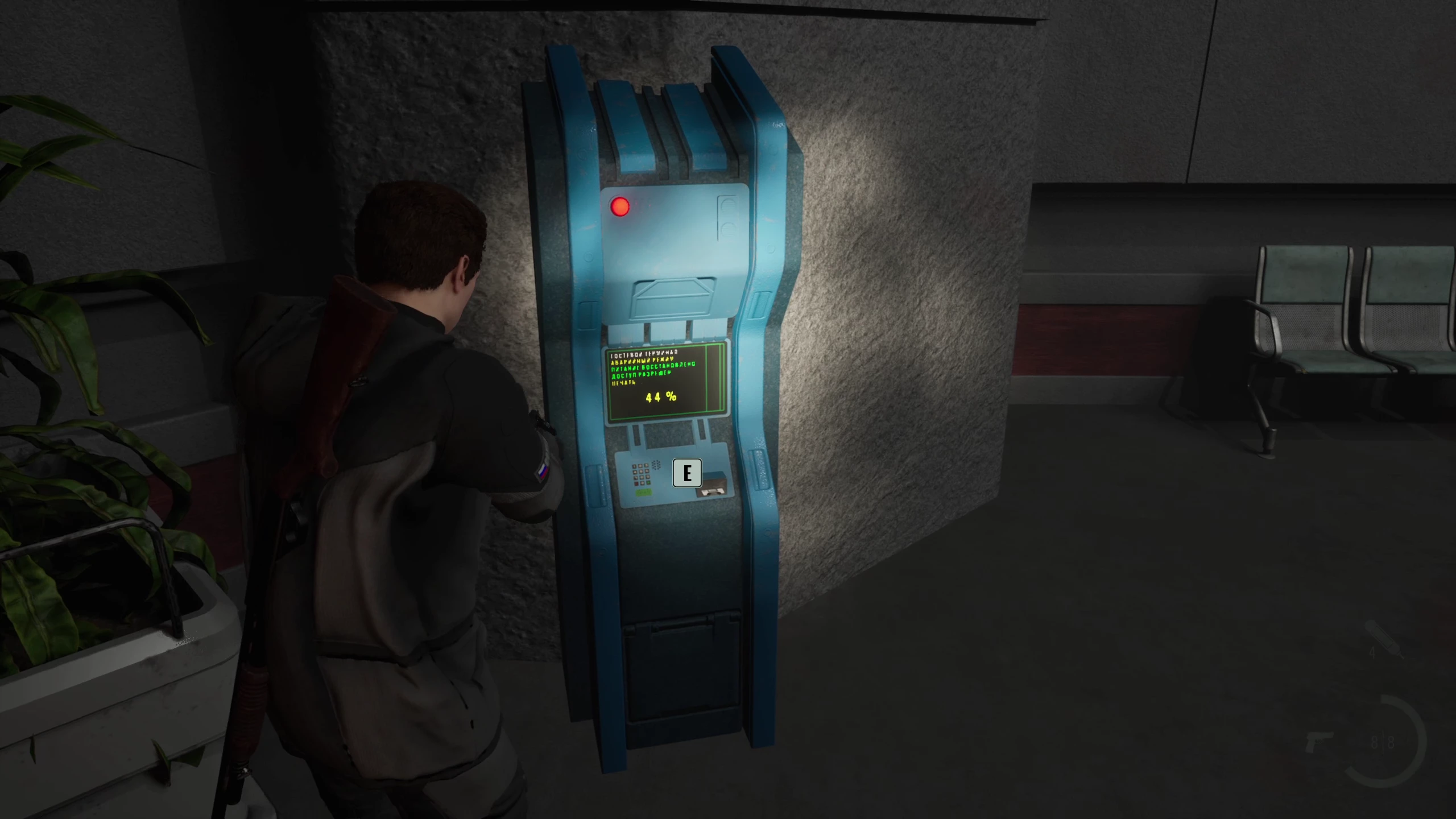 Po przybyciu na stację, wejdź na lewą platformę i weź amunicję ze stołu. Następnie wejdź do przechylonego budynku w pobliżu klifu. W środku będzie szafka z kodem 8-1-2. Możesz znaleźć ten kod w notatce na samym końcu rozdziału, przed wejściem do kompleksu. W szafce znajdziesz naboje do strzelby, torbę (powiększa twój plecak o 2 sloty) oraz apteczkę (w pełni przywraca zdrowie).