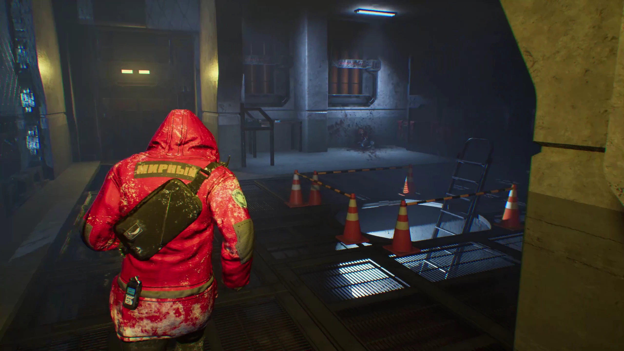 Poruszaj się wzdłuż lewej ściany i wejdź przez drzwi. Podążając za znakami, dotrzesz do pomieszczenia z generatorem. Po drodze zaatakuje cię zielony zombie. Te potwory zadają nie tylko obrażenia fizyczne, ale także zatruwają głównego bohatera. Odepchnij potwory i idź do lewego korytarza, podążając za znakami magazynu. Po prawej stronie, za kratą, będą dwa zielone potwory — nie musisz ich zabijać. Za drzwiami, na stole, znajdziesz figurkę Van Damme Beaver. Podejdź do zielonych rur, aby aktywować animację przejścia na drugą stronę.