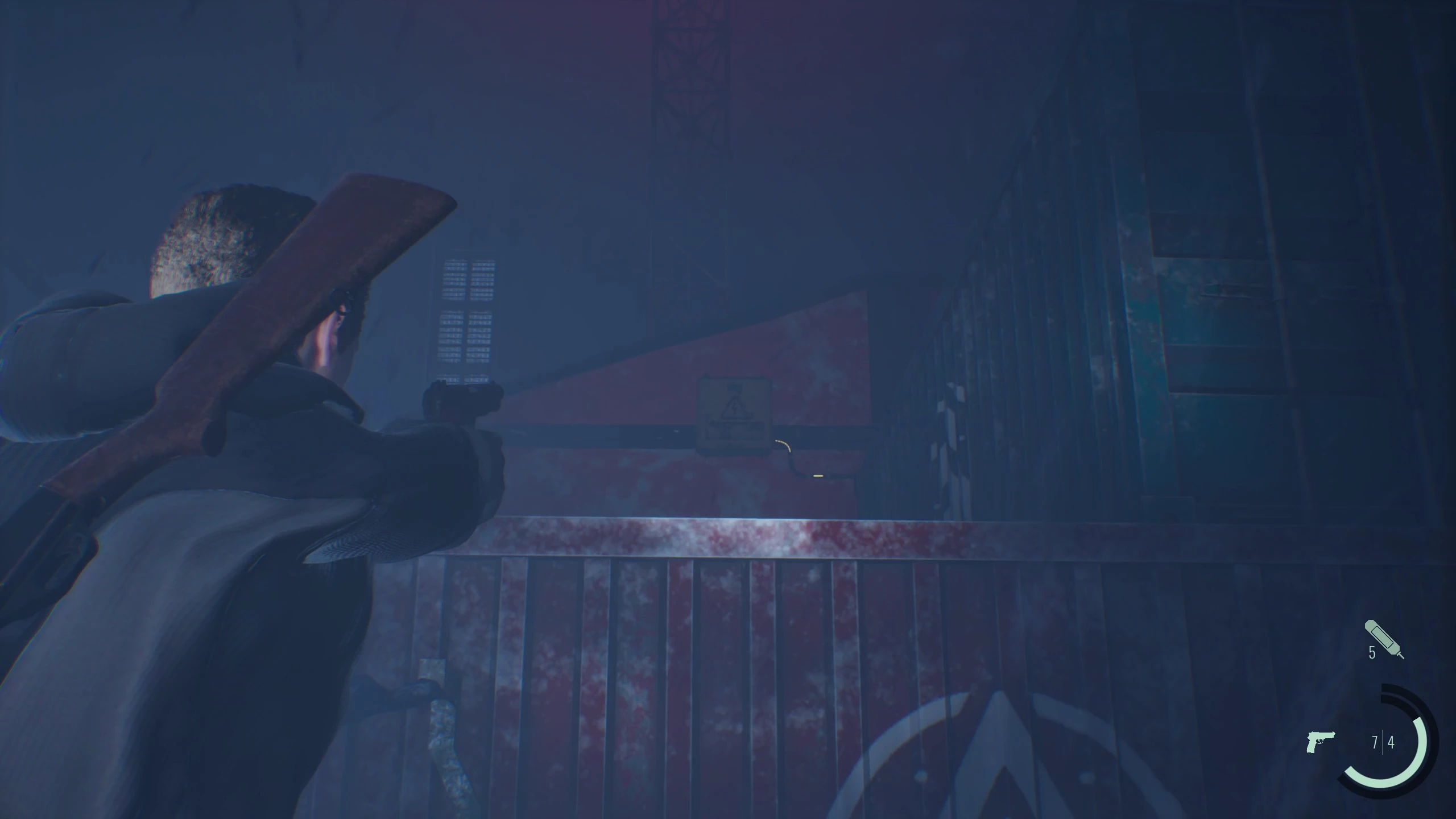 Podążaj ścieżką i przejdź przez budynek, aby ominąć czerwony samochód. Idź prosto do ściany, gdzie znajdziesz amunicję do pistoletu. Podejdź do bramy i zbadaj mechanizm, aby otrzymać nowe zadanie polegające na znalezieniu dźwigni. Po lewej stronie bramy znajduje się więcej amunicji. W pobliżu jest mały pokój, w którym możesz zapisać grę i zostawić dodatkowe przedmioty w skrzynce. W szafce znajdziesz bandaż, który można połączyć z środkiem przeciwbólowym, aby stworzyć apteczkę.
