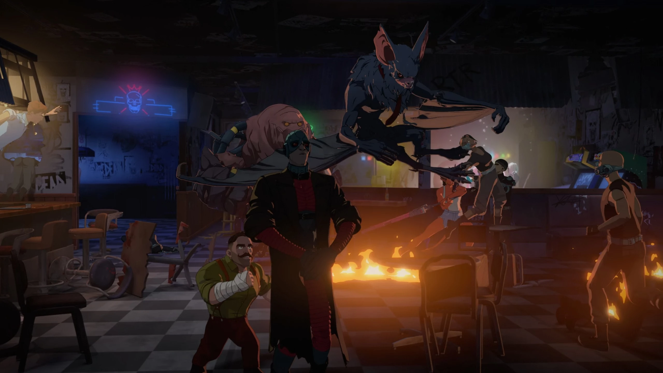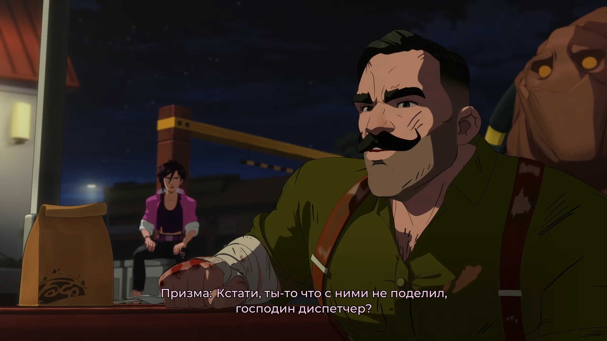 Strongman podejdzie do Roberta i zapyta, co on robi w barze dla złoczyńców.