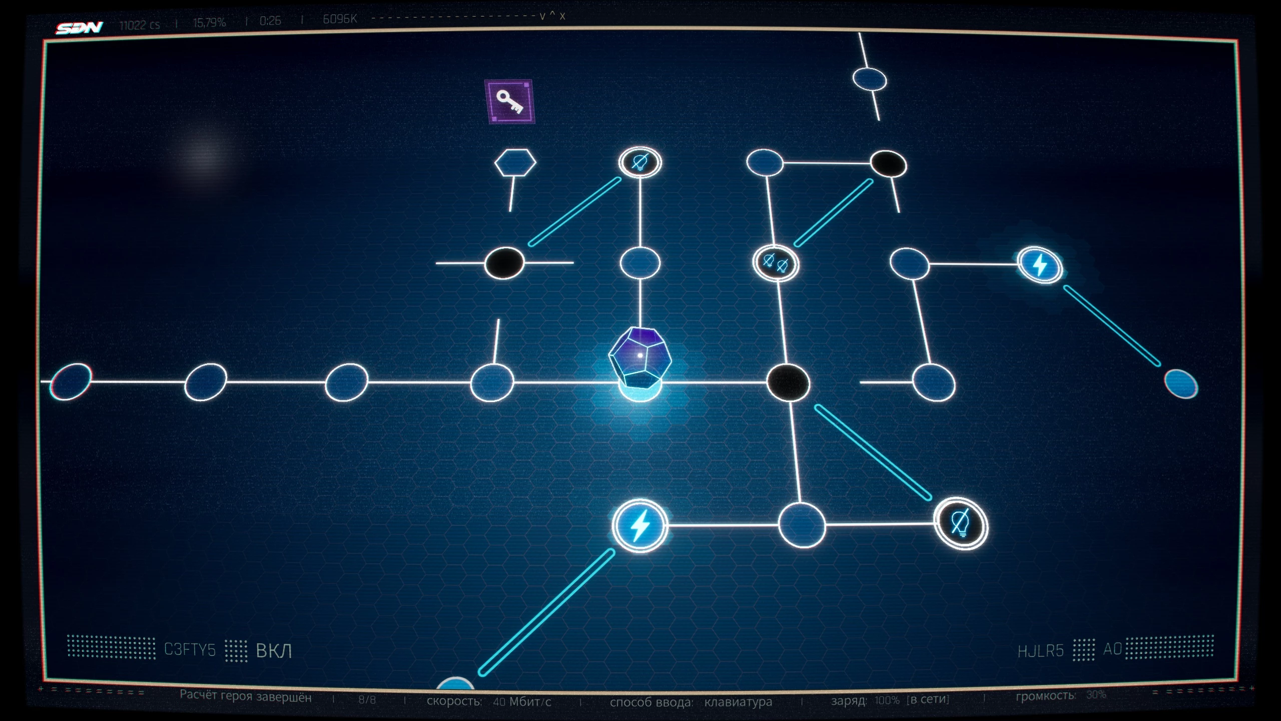 - Przesuń w dół, zostaw to na komórce z dwiema lampami, a następnie przekaż ładunek z dolnej lampy do niej.