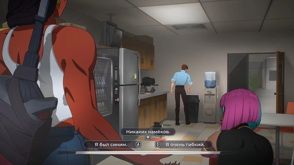 Następnie scena przenosi się do szatni, gdzie Blondie łapie bohatera. Jeśli wybrałeś kolację na końcu czwartego odcinka, otrzymasz następujące opcje odpowiedzi.