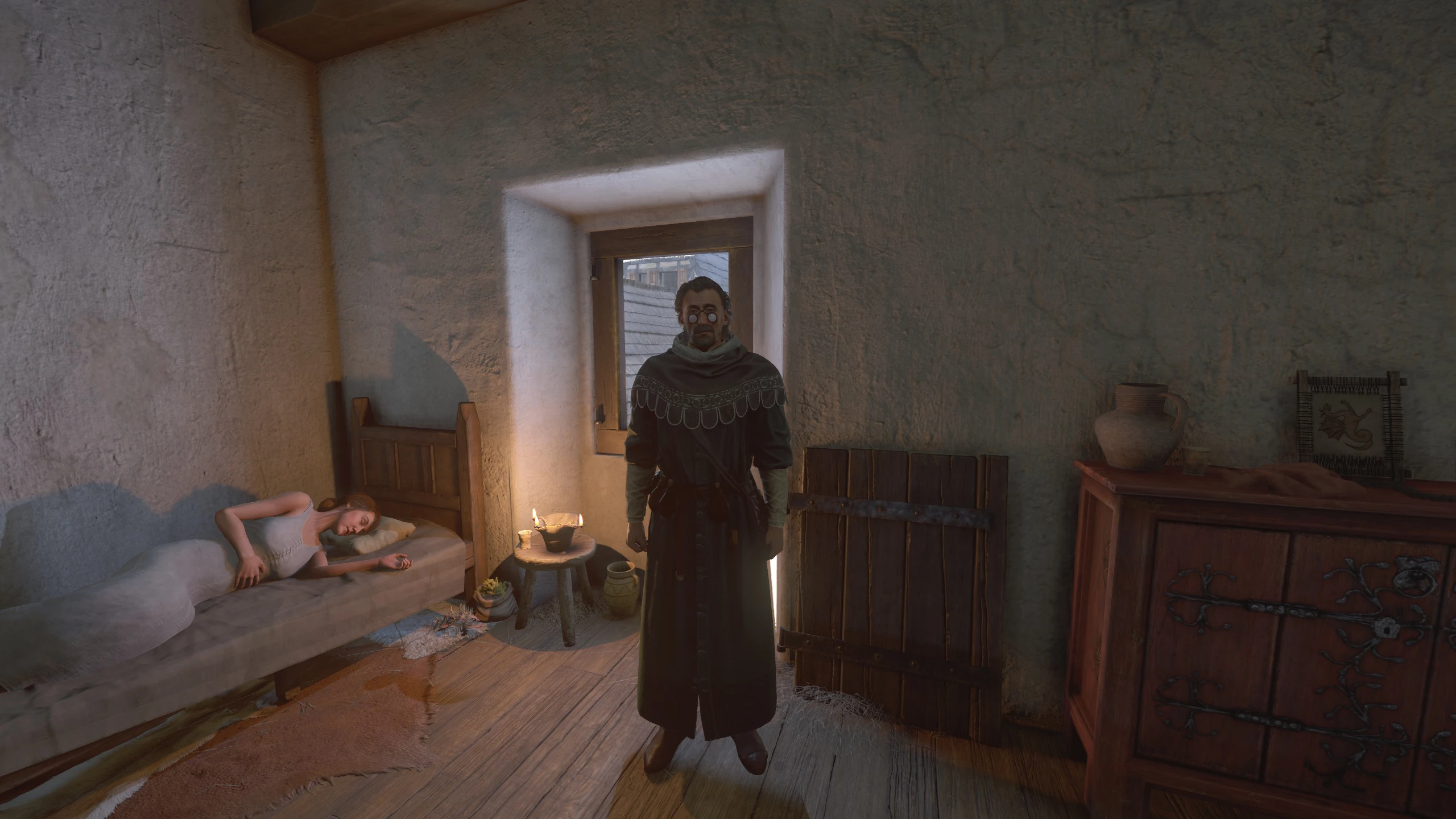 Obejdź blok i wejdź do domu przez tylne drzwi. Wejdź na drugie piętro i dostarcz list do Albicusa. Rozmowę przerwie szlachcic, który puka do frontowych drzwi. Rozwiąż problem za pomocą pięści lub perswazji. Po tym lekarz zasugeruje, abyś poszedł z nim do klasztoru Sedlec. Zanim podejmiesz decyzję, przeczytaj następny akapit i notatkę.