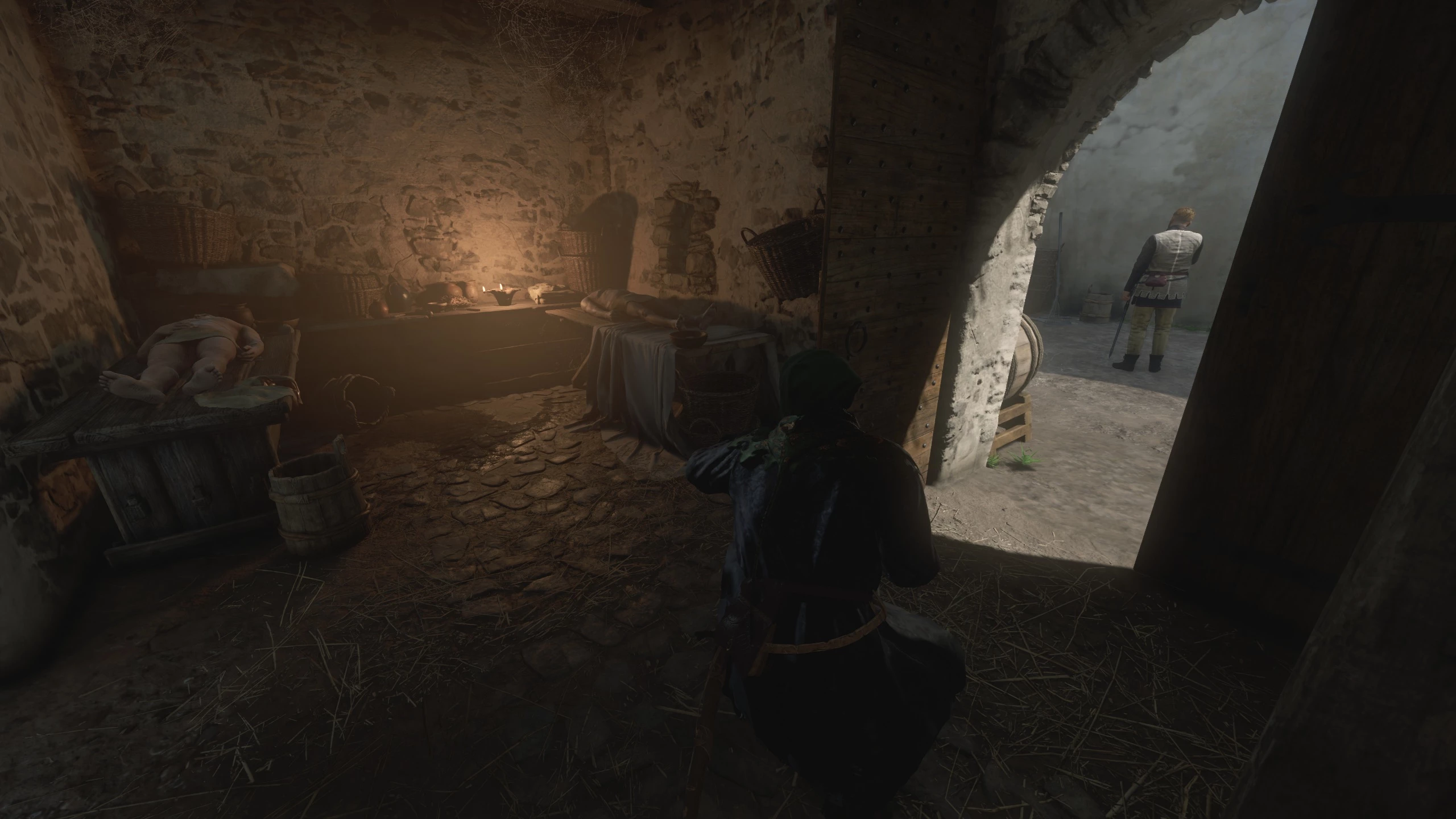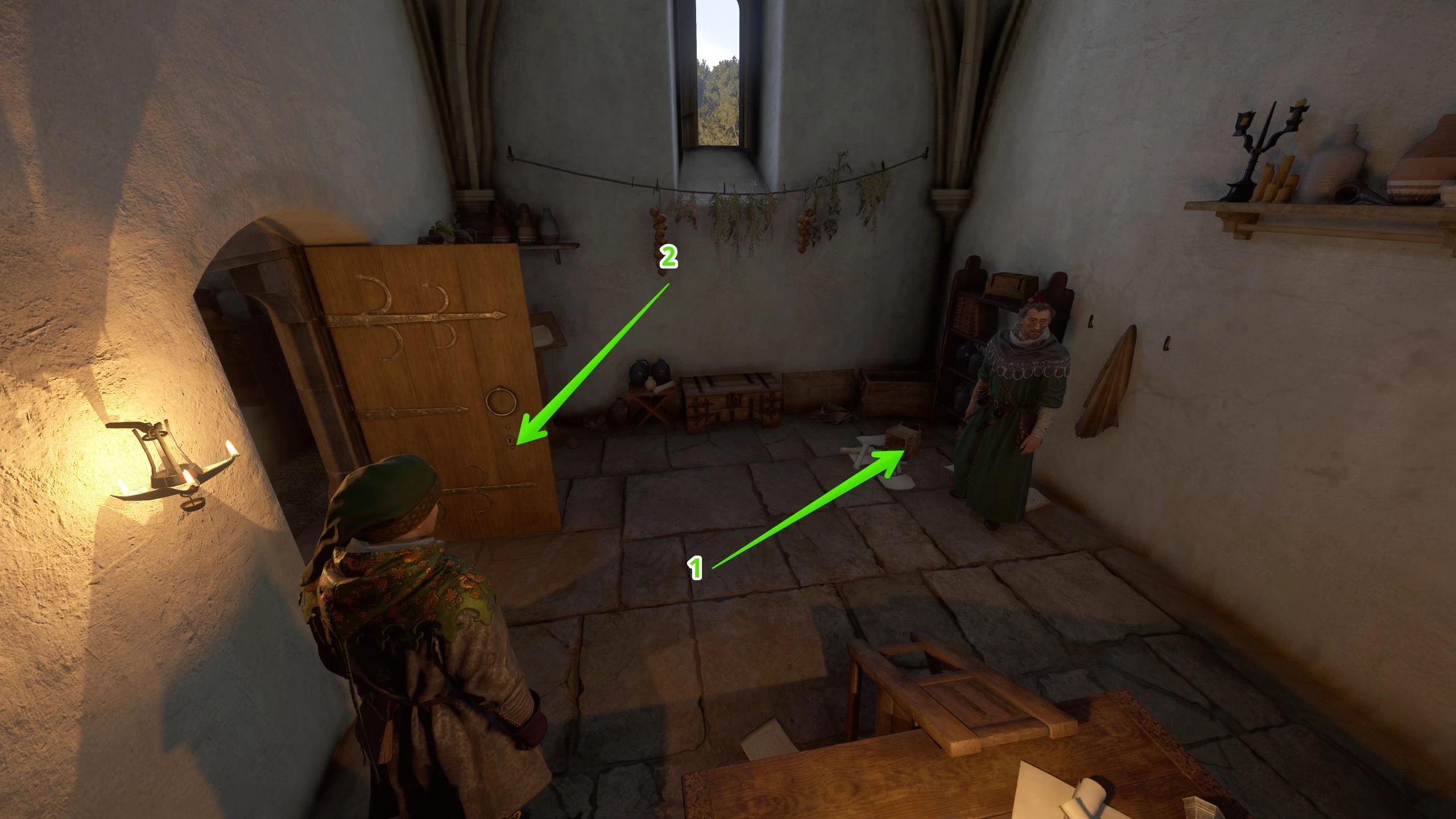 Znajdź Zdeněka na północy i zapytaj go o Blažena. Następnie porozmawiaj z Valerią, użyj swojej umiejętności mowy i dowiedz się o jej podejrzeniach dotyczących zarządcy. Wejdź do warsztatu, idź na drugie piętro, przeszukaj skrzynię i weź klucz do magazynu z półki. Zejdź do piwnicy i odkryj rozcieńczone wino. Wróć do kwatermistrza, zastrasz go i zdobądź breloczek do piwnicy klasztornej.