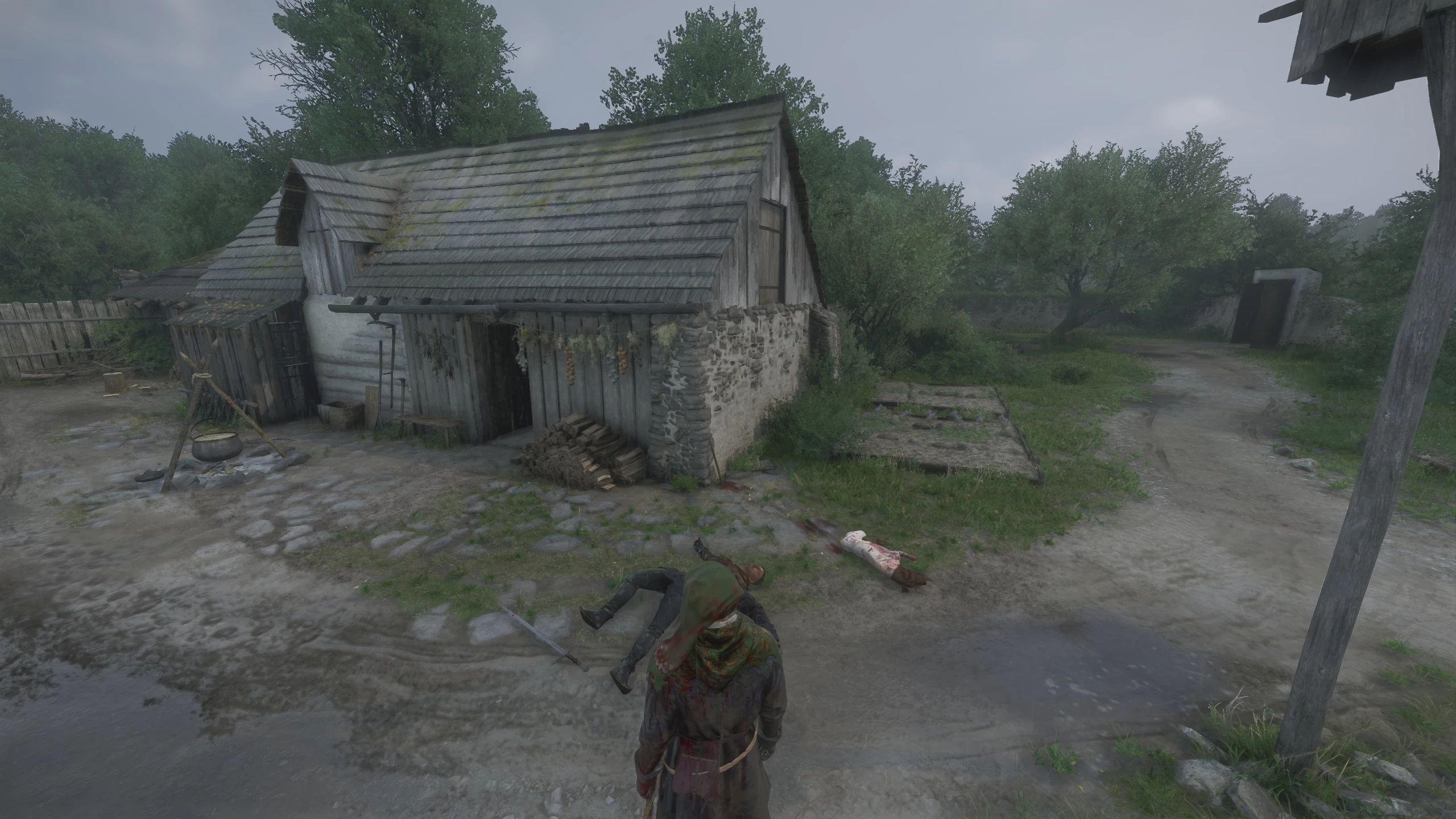 Wyjdź z kościoła przez zachodnie drzwi i kieruj się w stronę pól chmielowych. Obejdź biały budynek i wejdź do domu naprzeciwko. Możesz wspiąć się na dach, używając drabiny po lewej stronie. Inną opcją jest wytrych do drzwi lub kradzież klucza od strażnika bawiącego się z psem. Używając swoich umiejętności uczonego, zbadaj ciała tych, którzy zginęli w pożarze.