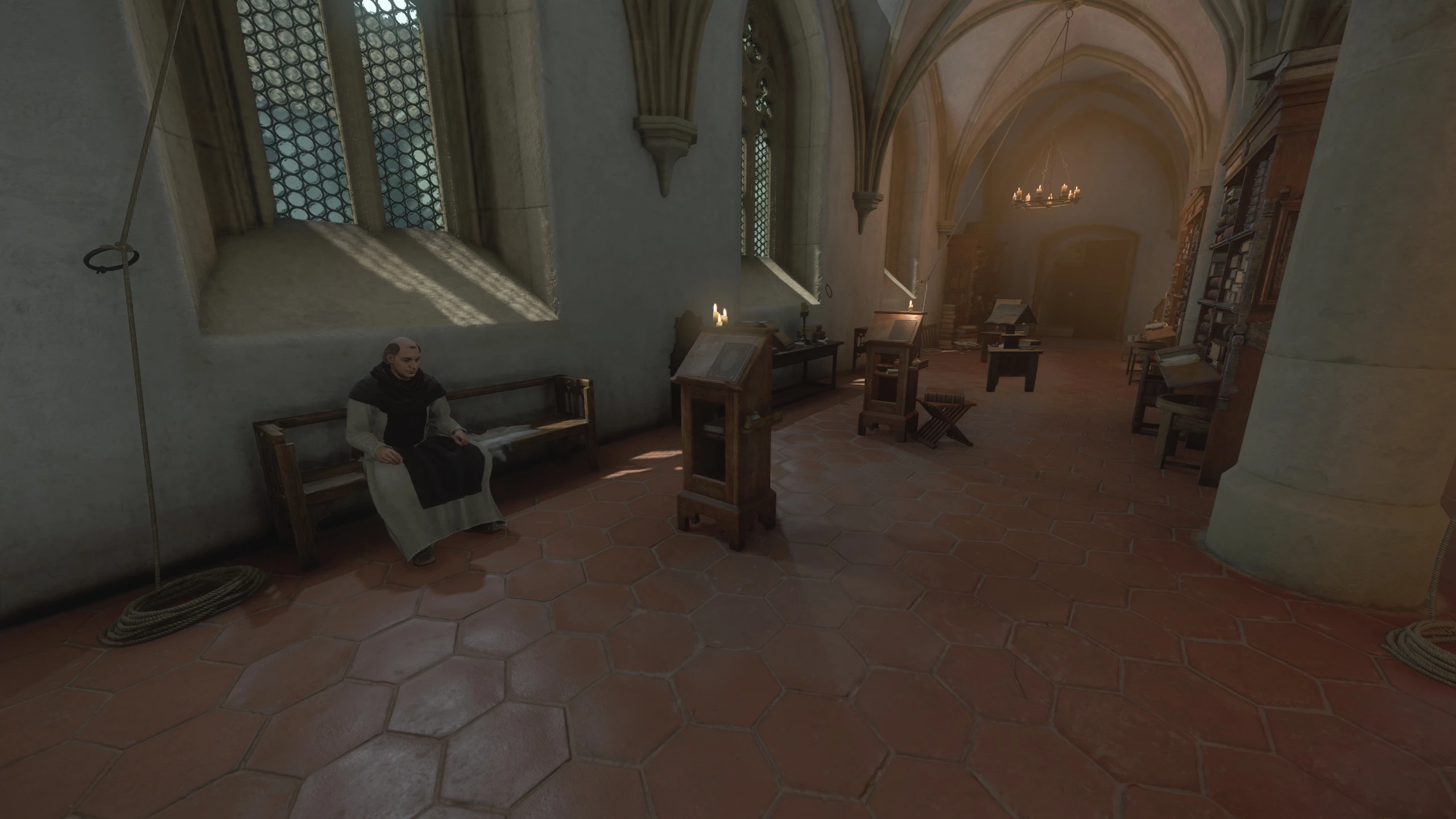 Wróć do Albicusa i opowiedz mu wszystko, co się dowiedziałeś. Następnie odbędzie się spotkanie z opatem—nie mów mu o tajnym skryptorium. Jan zdecyduje się na zamknięcie klasztoru w celu kwarantanny i ogłosi godzinę policyjną, umieszczając bohaterów w szpitalu. Od teraz poruszanie się po terenie opactwa jest zabronione.