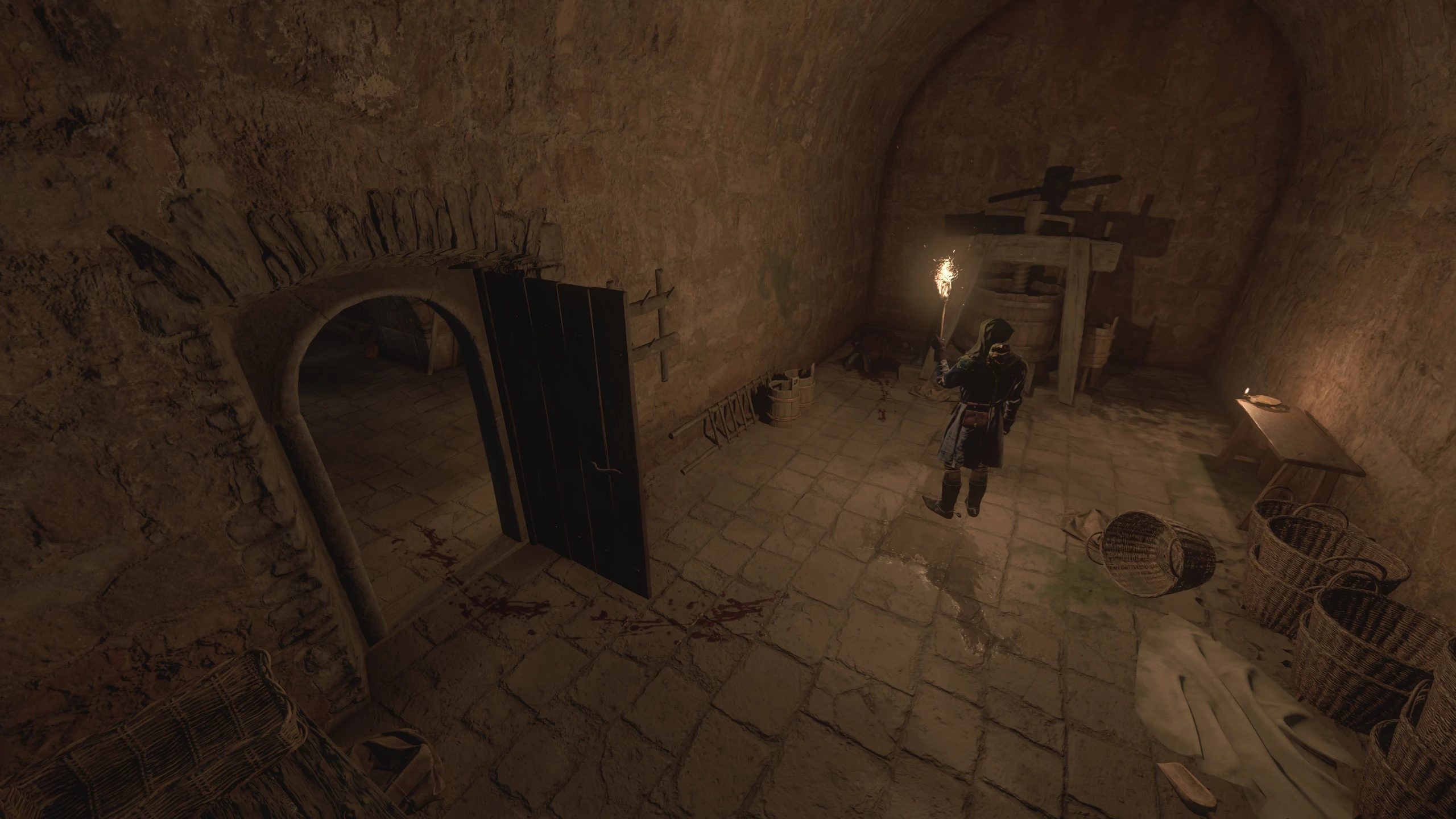 Opuszczając kryptę, znajdziesz martwe ciało strażnika. Podążaj za śladami krwi do dużej prasy do winogron. Tam zobaczysz martwego najemnika—w jego kieszeniach znajdziesz sztylet i węgierskiego forinta. Wróć do skryptorium i zgłoś swoje odkrycia.