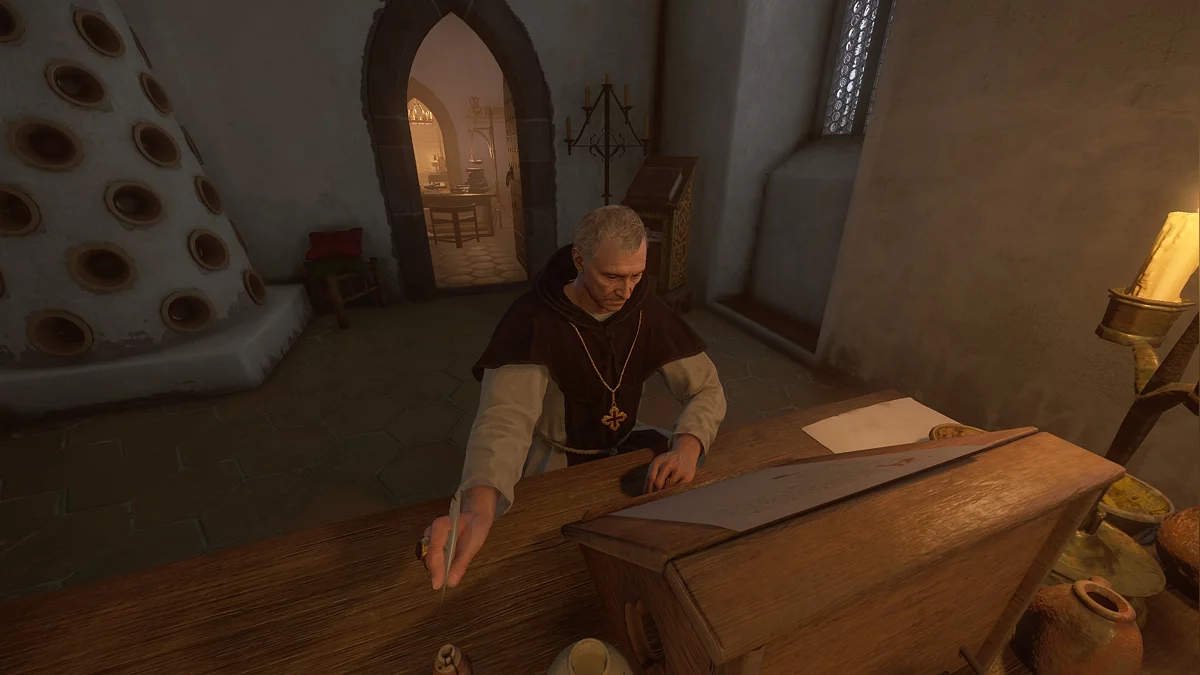 Przed wyjazdem musisz wybrać strój bez zbroi ani jej elementów. Po scenie przerywnikowej bohaterowie spotkają się z opatem Janem. Nie będzie mógł przyjąć audiencji, ponieważ trzech ludzi może być zarażonych dżumą.