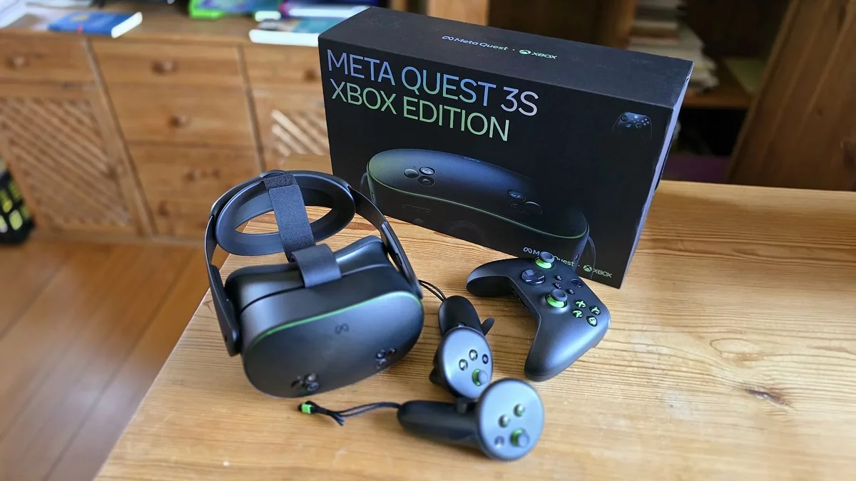 To pierwsze wydanie zestawu słuchawkowego Meta w limitowanej edycji. W cenie 399,99 USD (około 31 000 ₽) jest dostępny od dziś w USA i Wielkiej Brytanii. Oprócz wyższej ceny w porównaniu do standardowego białego Quest 3S (299,99 USD), nowy model charakteryzuje się wyjątkowym czarno-zielonym schematem kolorystycznym inspirowanym Xbox (Carbon Black i Velocity Green). Zestaw zawiera również: