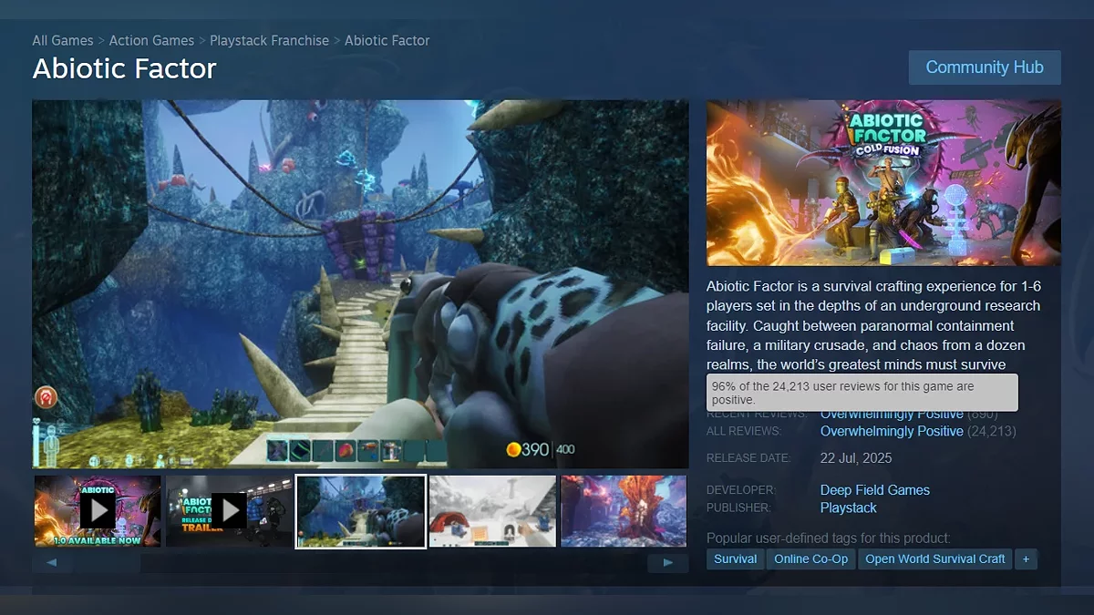 Pełna wersja (1.0) Abiotic Factor, gra survivalowa inspirowana Half-Life, oficjalnie zadebiutowała na Steamie i konsolach po wcześniejszym udostępnieniu w wersji wczesnego dostępu. W momencie pisania, gra ma imponującą ocenę 96% na podstawie 24 000 recenzji, a gracze chwalą jej Half-Life-ową atmosferę.