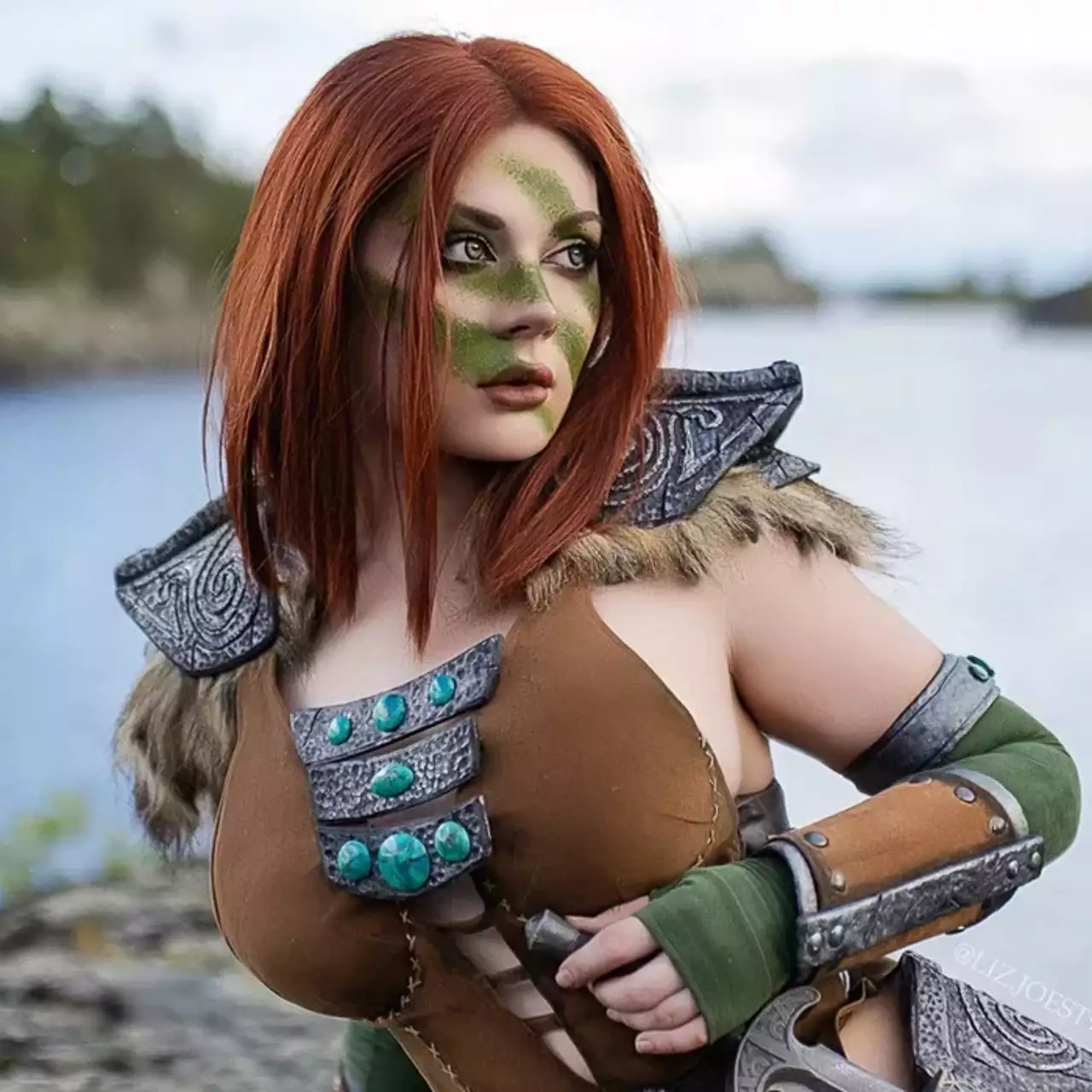 Liz Joestar przebrana za Aelę Łowczynię z Skyrim