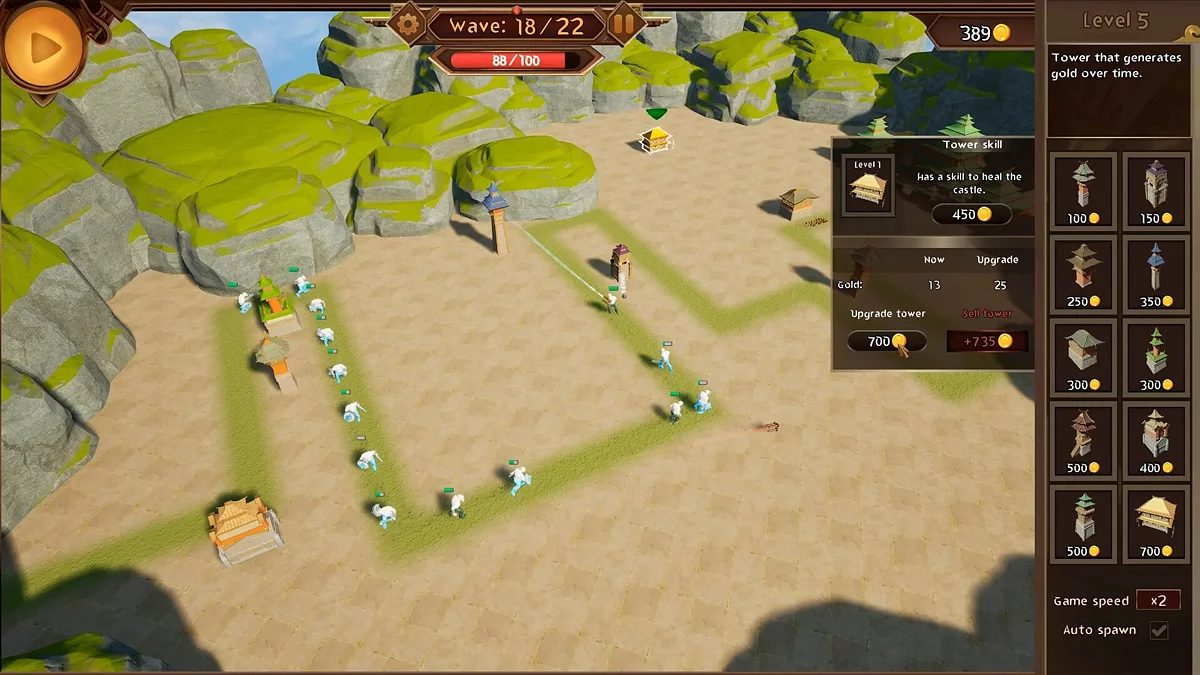 East Defense to gra typu tower defense, która łączy zabawę z strategicznym wyzwaniem, odpowiednia zarówno dla nowicjuszy, jak i doświadczonych graczy. Buduj i ulepszaj wieże, aby powstrzymać fale potworów zmierzających do twojego zamku, przy czym każdy typ wieży zyskuje unikalne umiejętności w miarę ulepszania. Staniesz w obliczu różnych potworów o różnych cechach, zarobisz złoto za ich pokonanie, aby poprawić swoje obrony, a co piątą i dziesiątą falę stawisz czoła trudniejszym bossom. Optymalne rozmieszczenie wież i mądre wykorzystanie ich umiejętności są kluczowe do zwycięstwa, a jeśli ukończysz poziom, nie wpuszczając żadnych potworów, odblokujesz specjalne etapy z unikalnymi mechanikami. Gra wcześniej kosztowała 5 $.