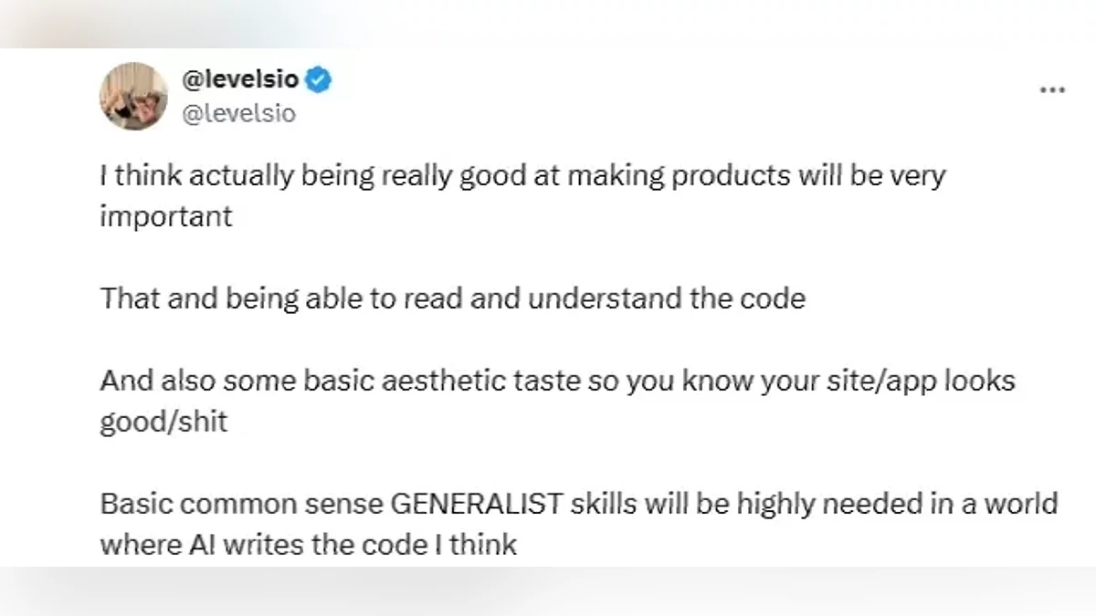 28 lutego 2025 roku Levels, który wcześniej nigdy nie pracował w branży gier, uruchomił fly.pieter.com — przeglądarkowy symulator 3D z walką powietrzną. Używając kombinacji Claude Sonnet 3.7 i edytora AI Cursor, w zasadzie «rozmawiał» z algorytmem: «Stwórz miasto z drapaczami chmur, w którym gracze kontrolują samoloty». Każde zadanie techniczne było przedstawiane jako dialog, omijając tradycyjne metody programowania.