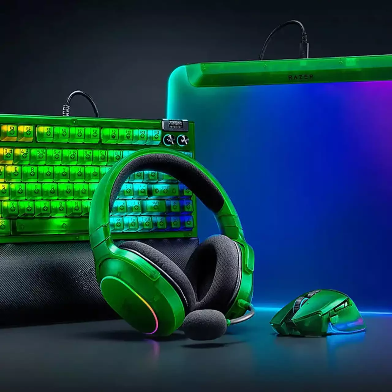 Razer wprowadził swoją kolekcję urządzeń Phantom Green Edition. Wyjątkową cechą tej serii są półprzezroczyste, zielonkawe plastikowe obudowy, które oferują wgląd w komponenty. Ten design potęguje efekt podświetlenia Chroma RGB od Razer, sprawiając, że wydaje się świecić nie tylko na powierzchni, ale także od wewnątrz samych urządzeń.