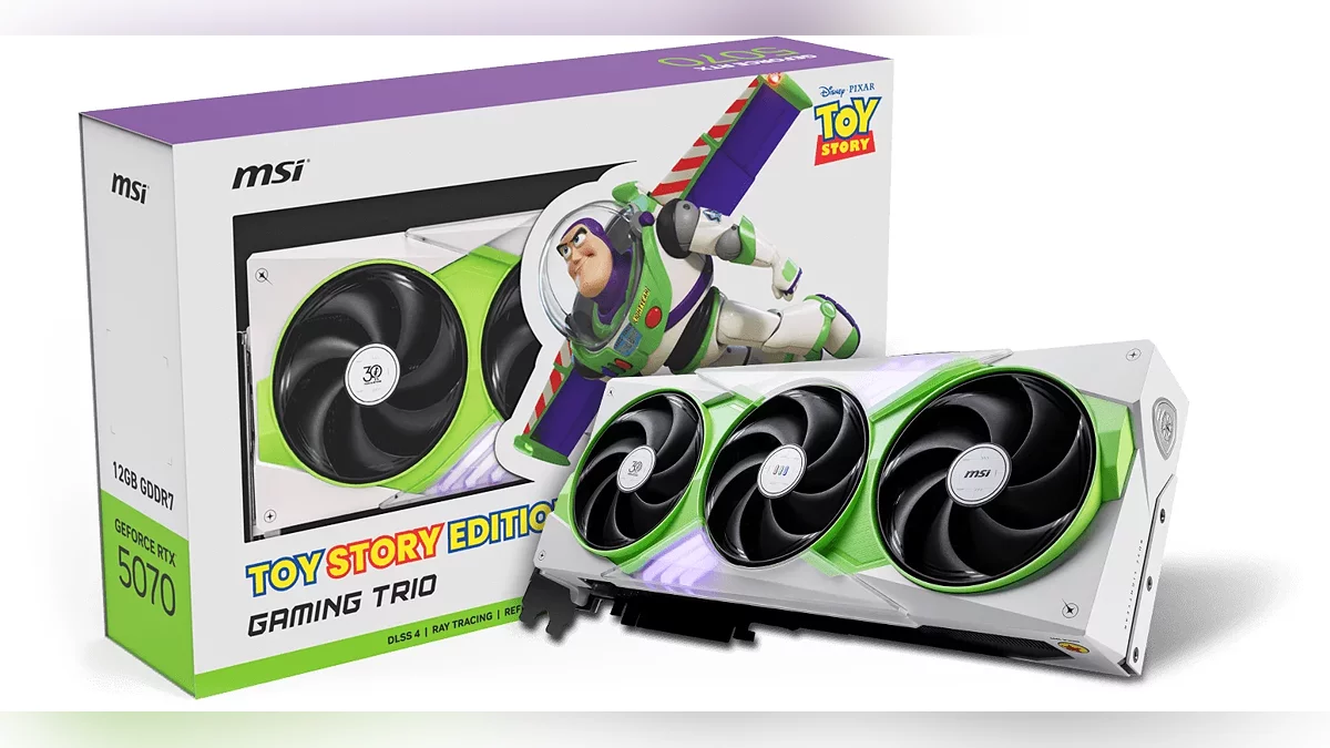 - GPU RTX 5070 Gaming Trio: Charakteryzuje się białą i zieloną kolorystyką inspirowaną Buzzem Astralem, nawiązującą do wyglądu Kosmicznego Rangersa.