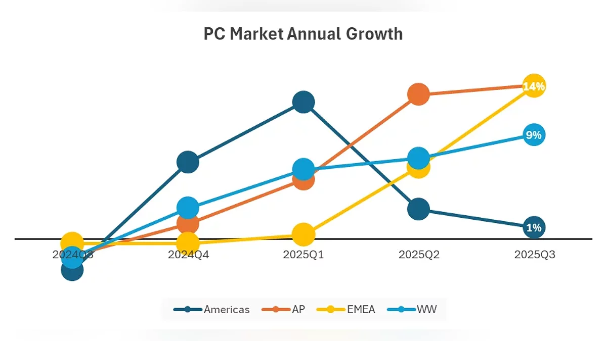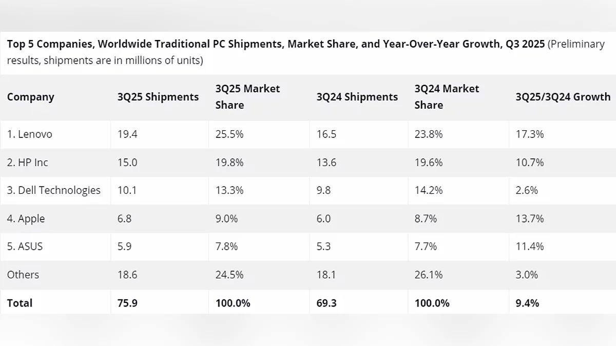 Globalne dostawy komputerów PC odnotowały znaczący wzrost w okresie lipiec-wrzesień 2025 roku, według świeżych statystyk z International Data Corporation (IDC). Globalna wielkość rynku osiągnęła 75,8 miliona jednostek, co stanowi wzrost o 9,4% w porównaniu do tego samego okresu w zeszłym roku.
