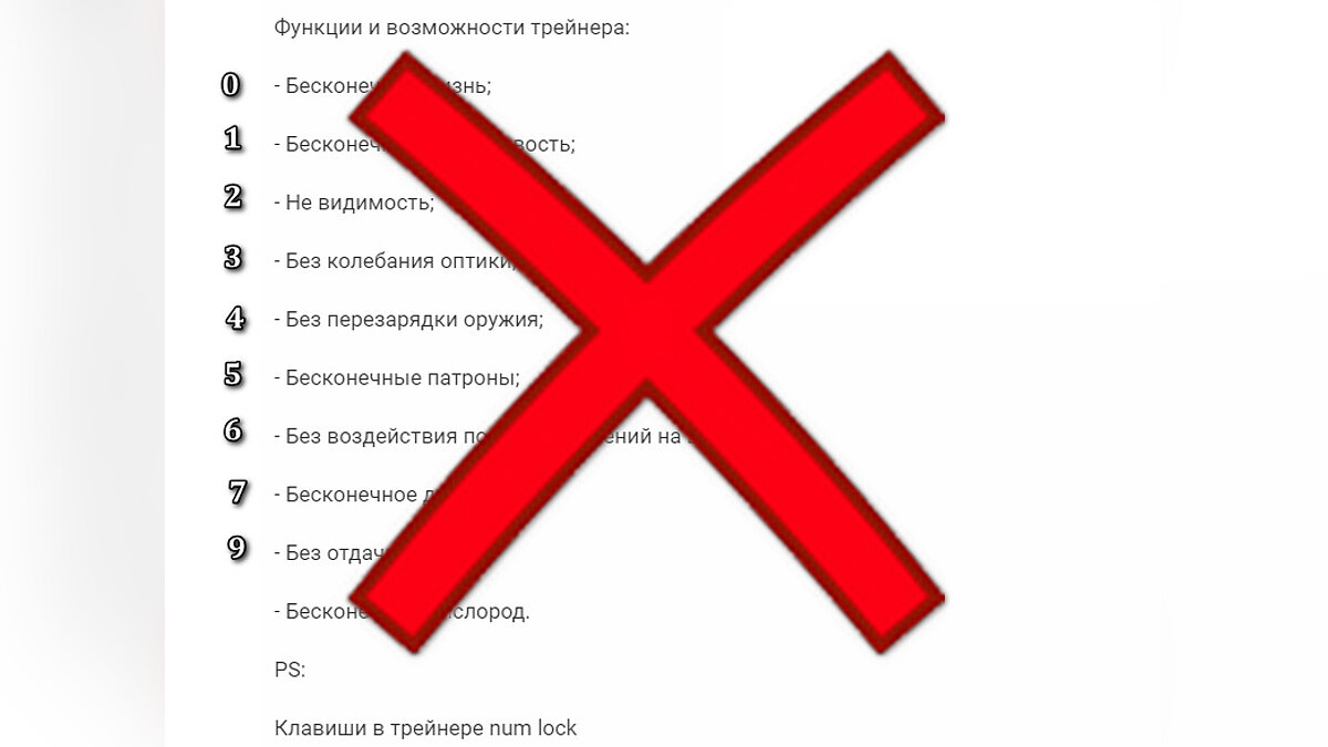Опции в трейнере не соответствуют опциям в описании.