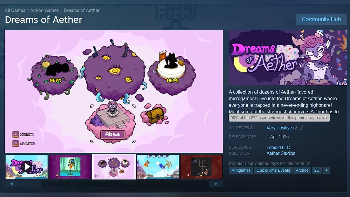 Aether Studios i Lepioid LLC uruchomiły Dreams of Aether na Steam, kolekcję mini-gier w stylu WarioWare z postaciami z uniwersum Rivals of Aether. Aby uczcić premierę, deweloperzy zainicjowali darmowy giveaway gry, który potrwa tylko jeden dzień (oferta kończy się 2 kwietnia).